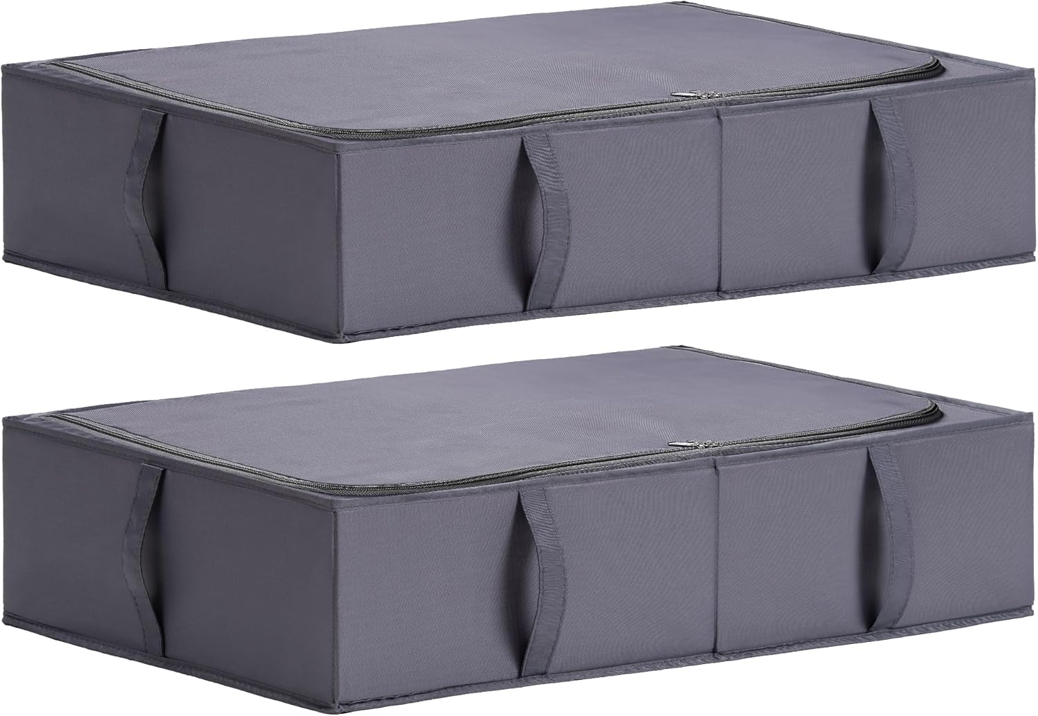 TYEERS Under Bed Storage Containers, Durable Fabric, Washable, Collapsible, Under Bed Storage Bins for Clothes, Blankets, Sheets, Shoes, 27.5x16.5x7 Inches, 2-Pack, Dark Grey