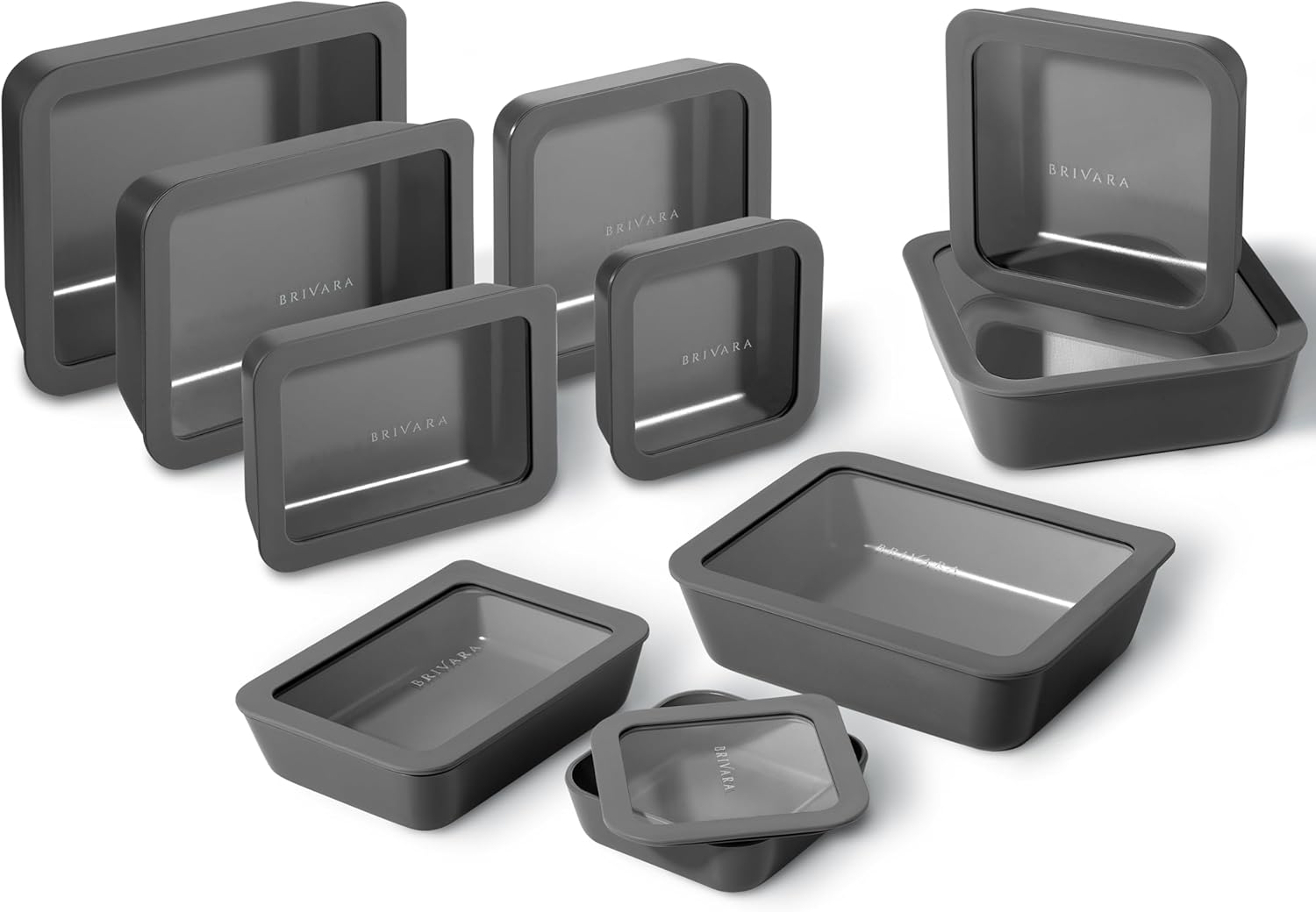 - SAFE, NON-TOXIC CONTAINERS! Every piece of our food containers are free of toxic materials such as PTFE, PFOA, PFAS, and BPA. Brivara ceramic coated glass meal prep containers are healthier for you and your food.