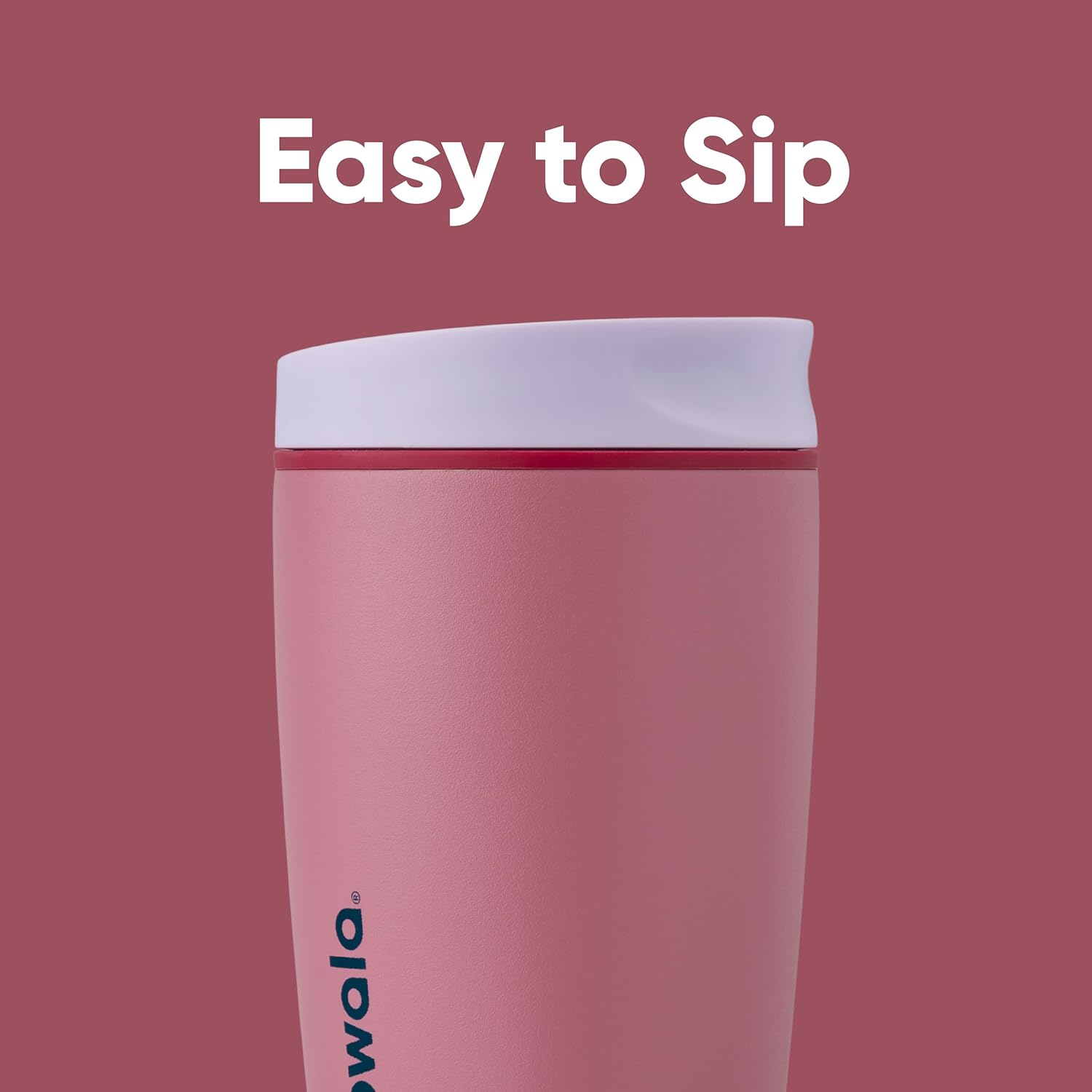 Owala SmoothSip Slider Insulated Stainless Steel Coffee Tumbler, Reusable Iced Coffee Cup, Hot Coffee Travel Mug, BPA Free 12 oz, Purple/Pink (Crochet Queen)