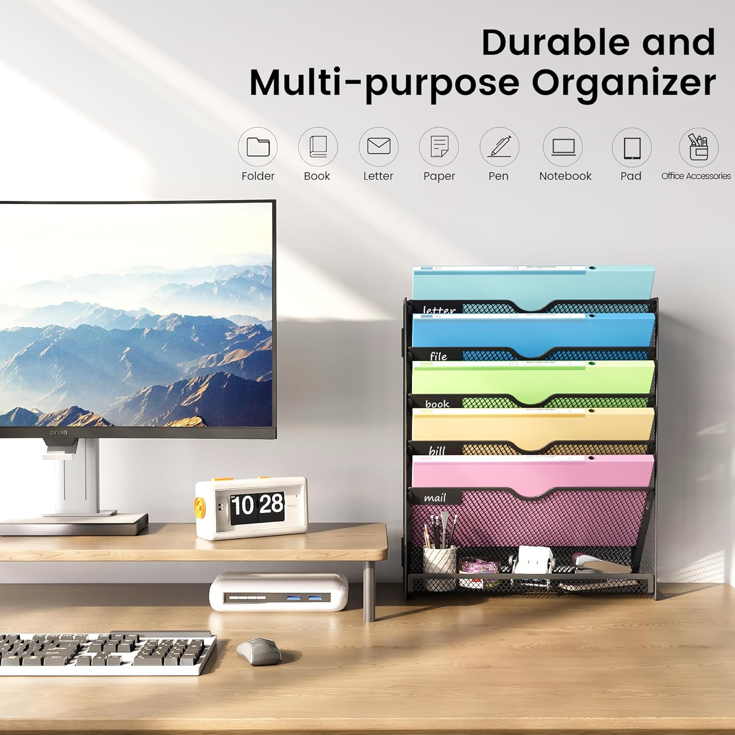 - VERSATILE ORGANIZATION: 6-tier wall mounted file organizer perfect for storing mail, papers, folders, and documents in office or home settings
