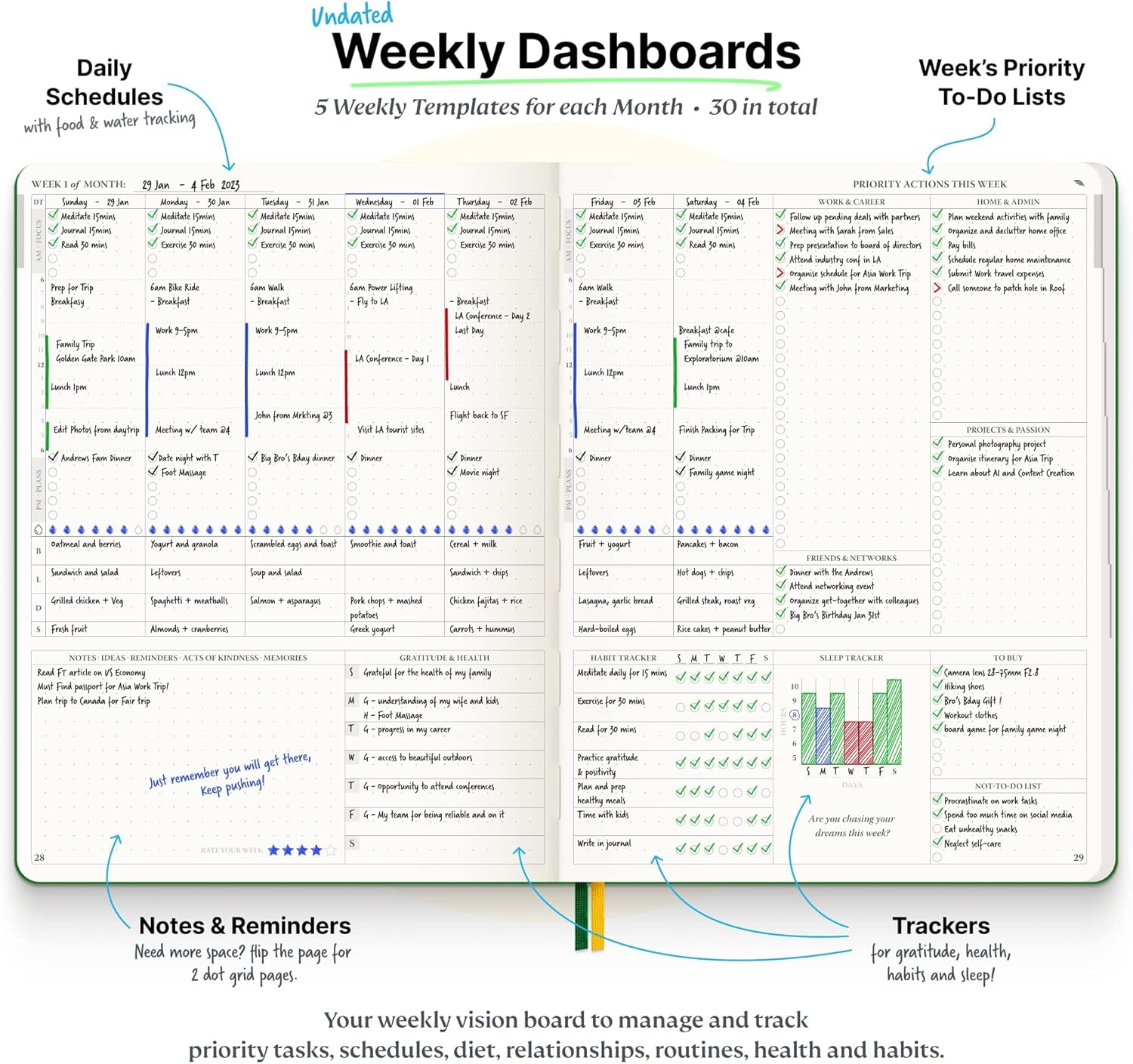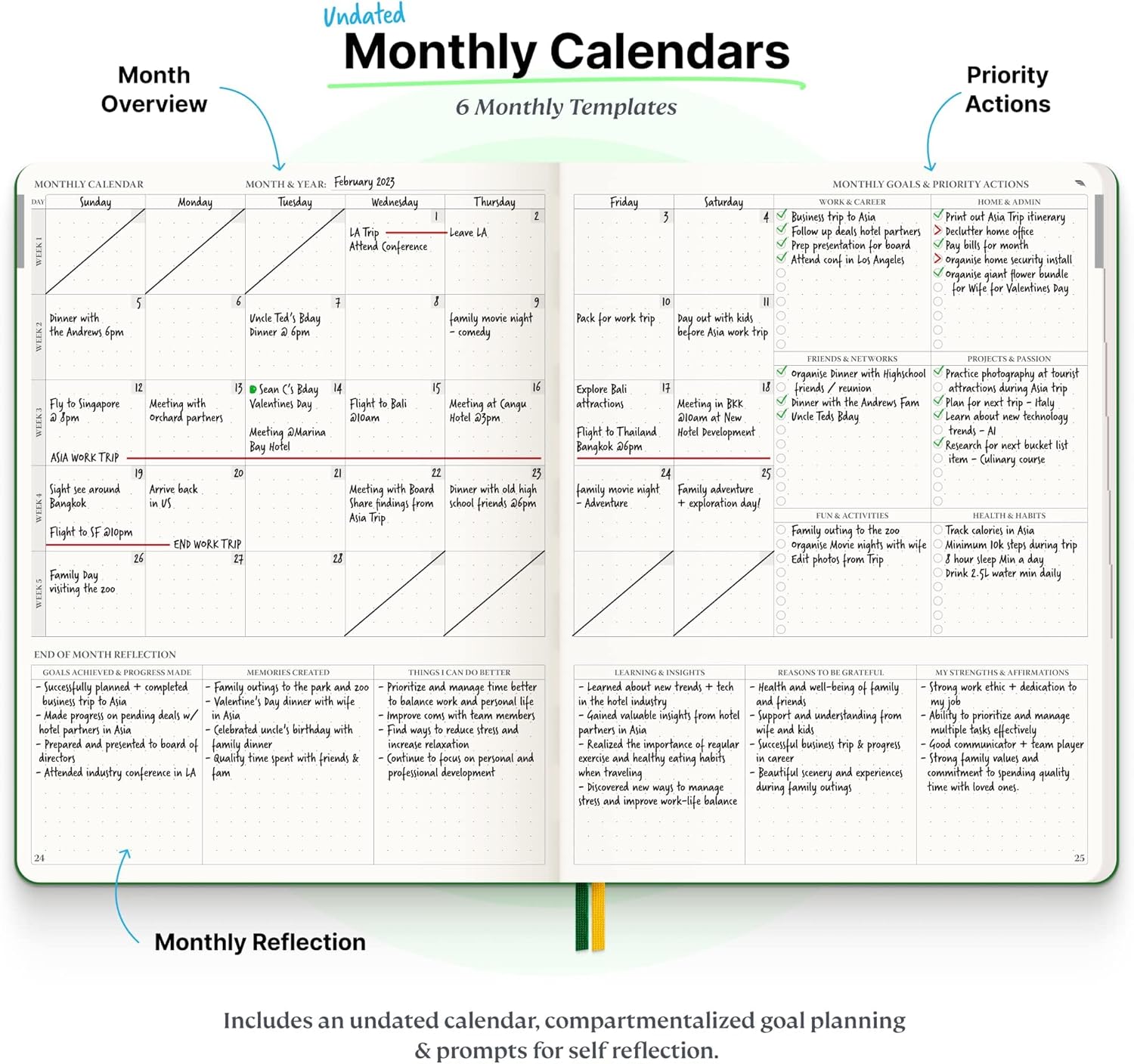 Roterunner Purpose Planner Notebook B5 7.5”x9.8” Undated 2026 Daily Weekly and Monthly Productivity Goal Setting Tool for Work Home ADHD Planner for Adults Self Care Journal (Pink Softcover)