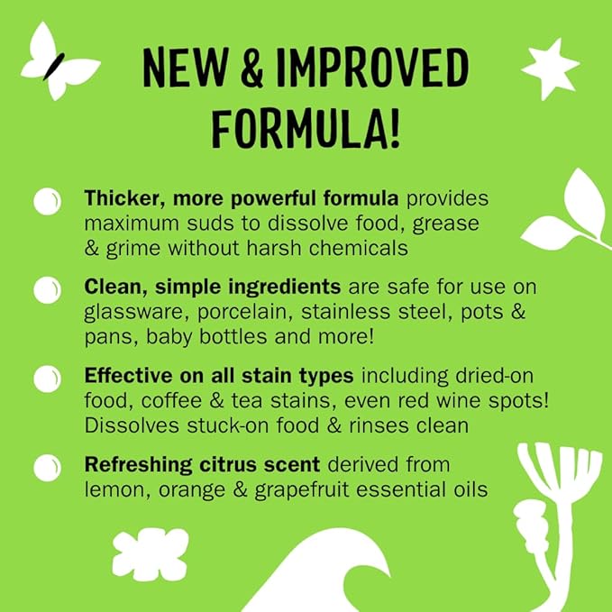 - POWERFUL AND EFFECTIVE: Our new and improved Liquid Dish Soap easily cuts through grease and grime to leave your dishes sparkling.