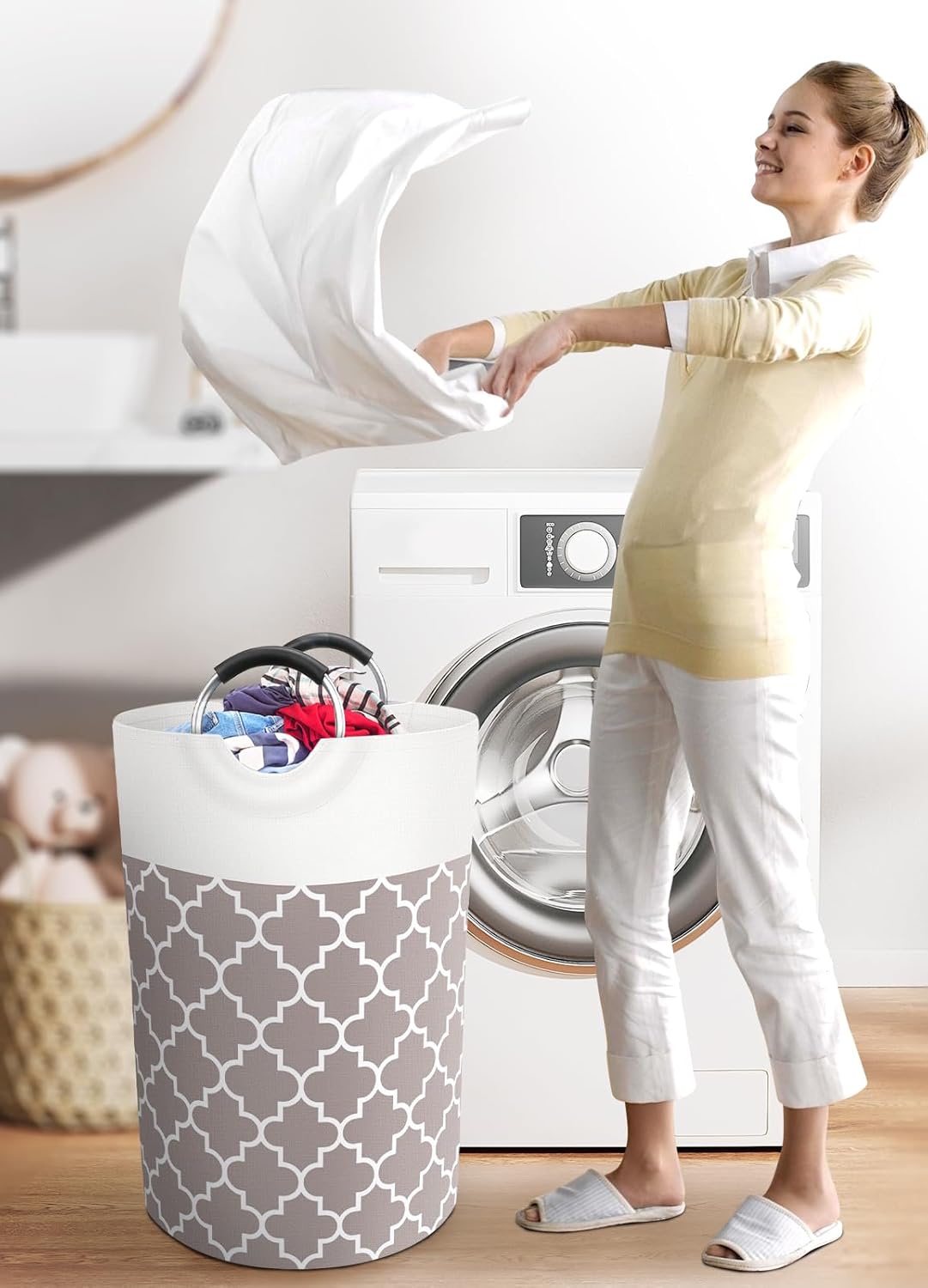 - Aluminum Soft Grip: The Fabspace laundry basket features textured aluminum handles with soft sponge grips, offering a comfortable hold as you carry laundry to your bedroom, bathroom, or laundry room