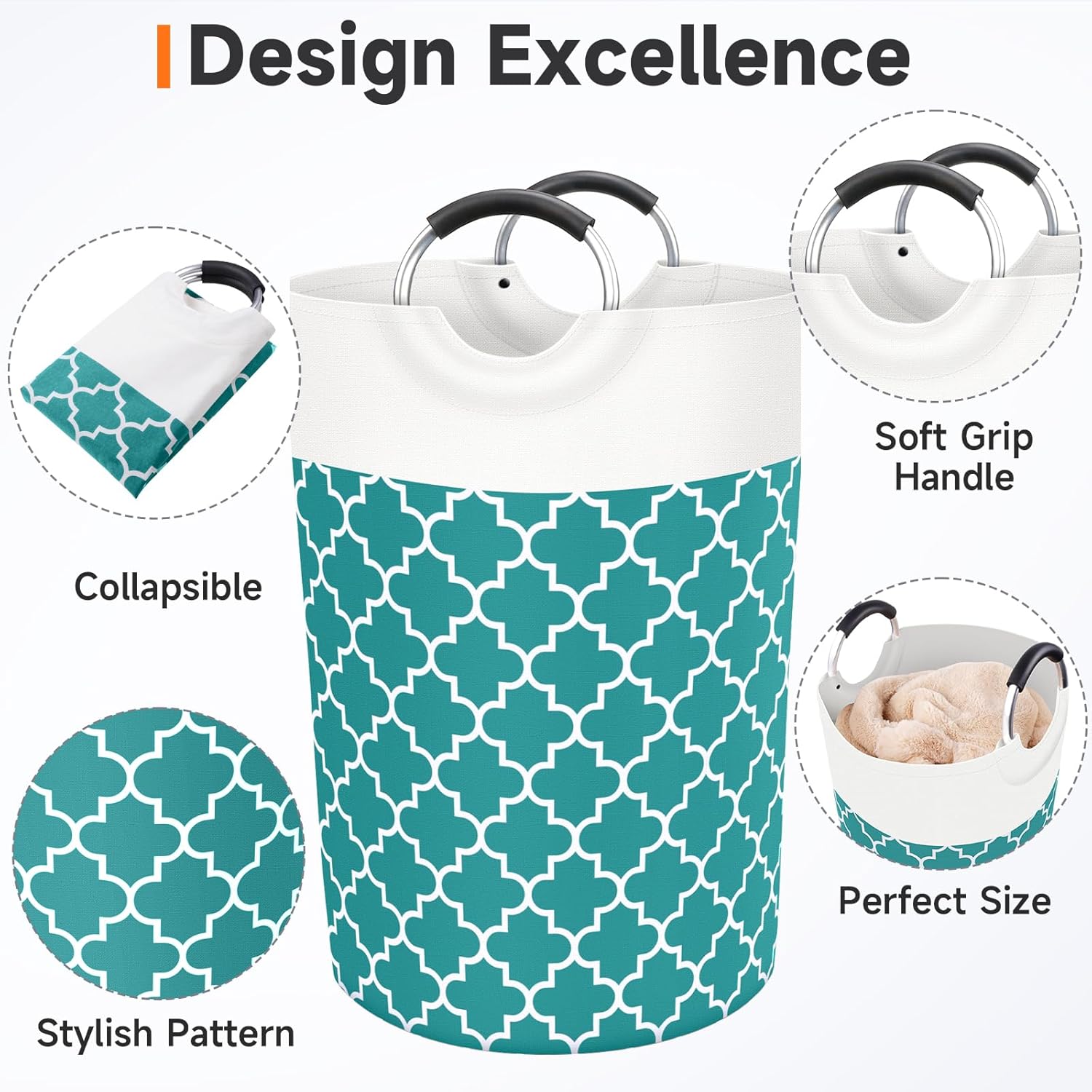 Large Laundry Basket Laundry Hamper Bag Washing Bin Clothes Bag Collapsible Tall With Handles Waterproof Travel Bathroom College Essentials Storage For College Dorm, Family (Green)115L