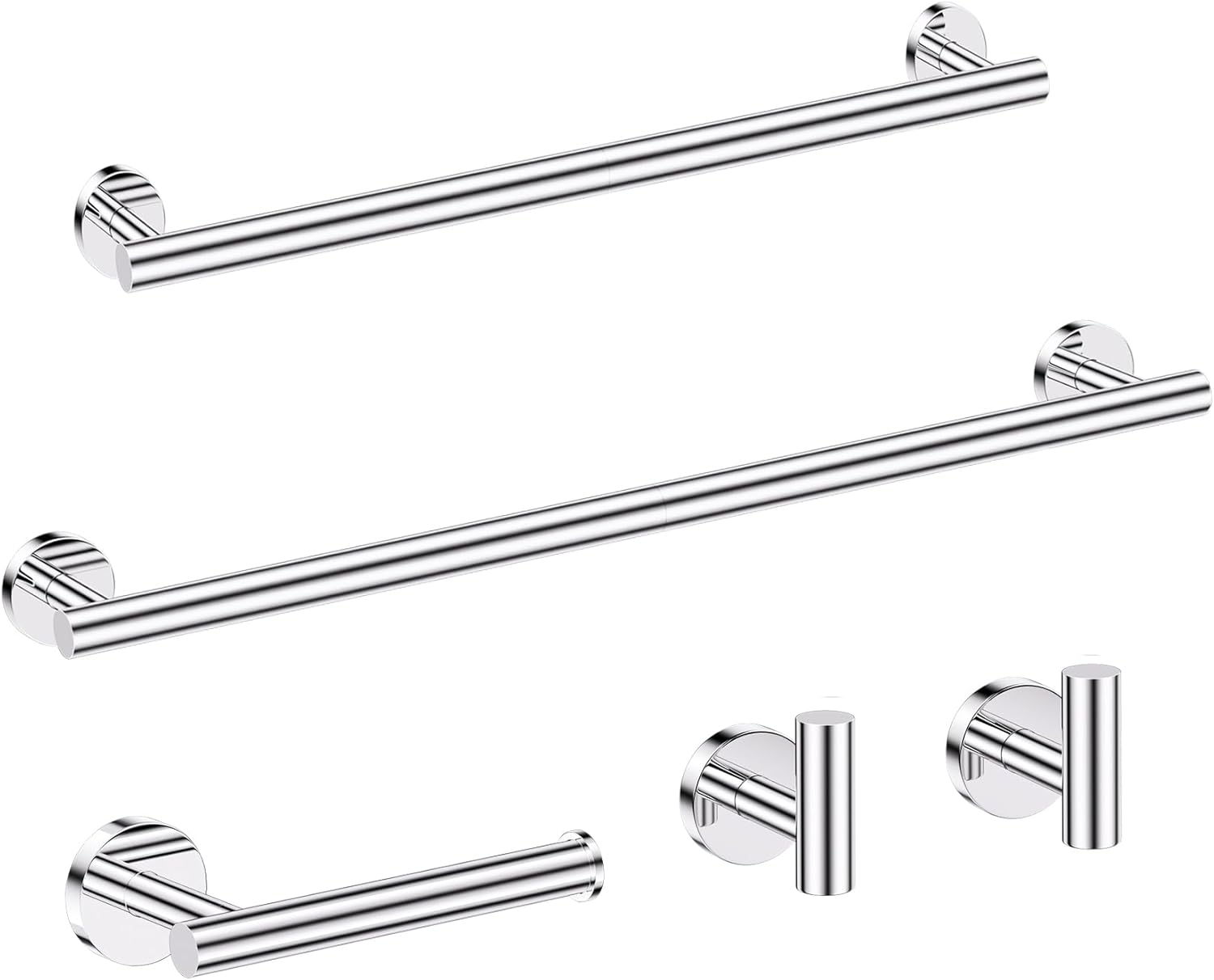 5 Pieces Bathroom Hardware Set, 23.6-inch+15.35-inch Bathroom Towel bar SUS304 Stainless Steel Bathroom Towel Bar Set Polished Chrome