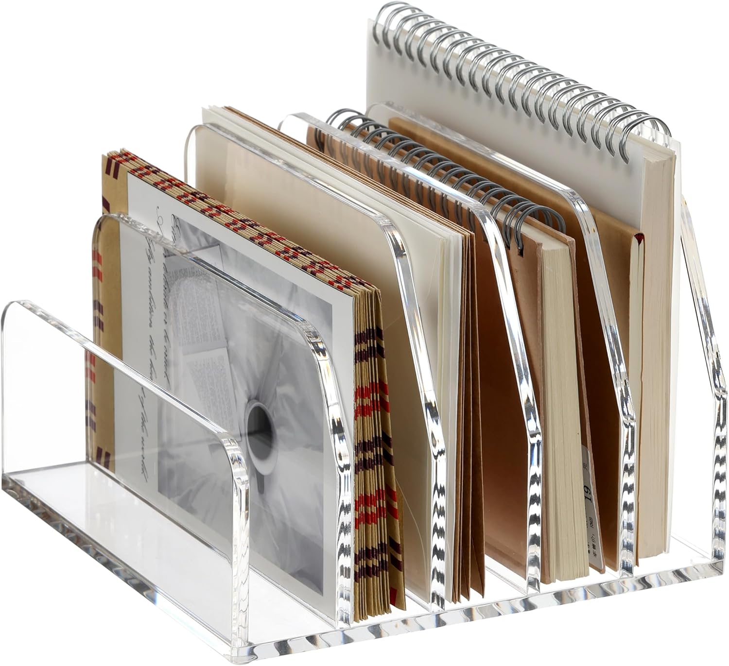 - šļø5 COMPARTMENT SPACE HIGH CAPACITY FILE SORTOR: Our acrylic file sorter measures 6.5x 6.7 x 4.57inches with spacious storage capacity, providing ample storage and sorting space for your emails and files. It is the perfect desktop organizer for organizing files, magazines, documents, letters, books, binders, folders, emails, eye shadow trays and more.