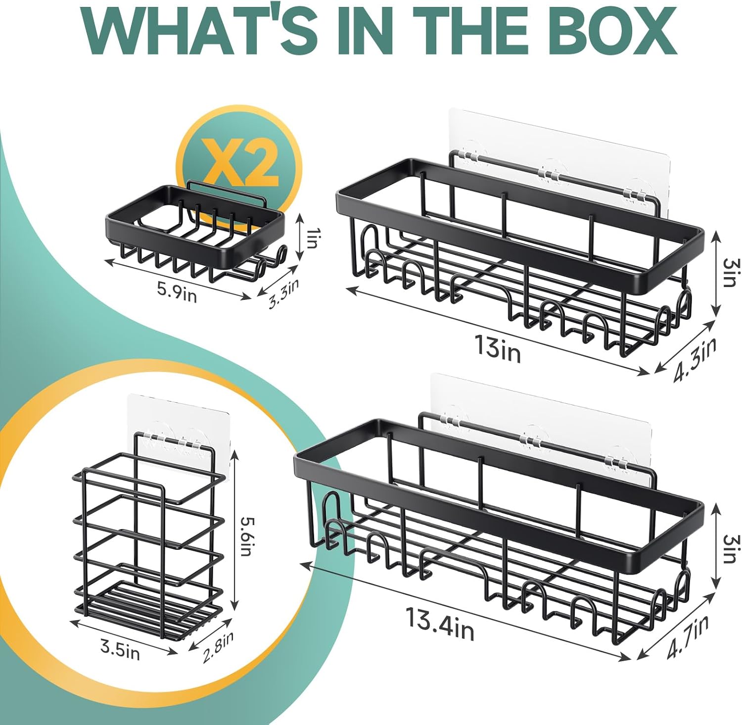 - Comprehensive Storage Solution: This 5-piece set includes medium and large caddies with a soap dish and toothbrush holder to organize shower essentials. Keep your shampoos, soaps, razors, and more neatly stored in one place for easy access.