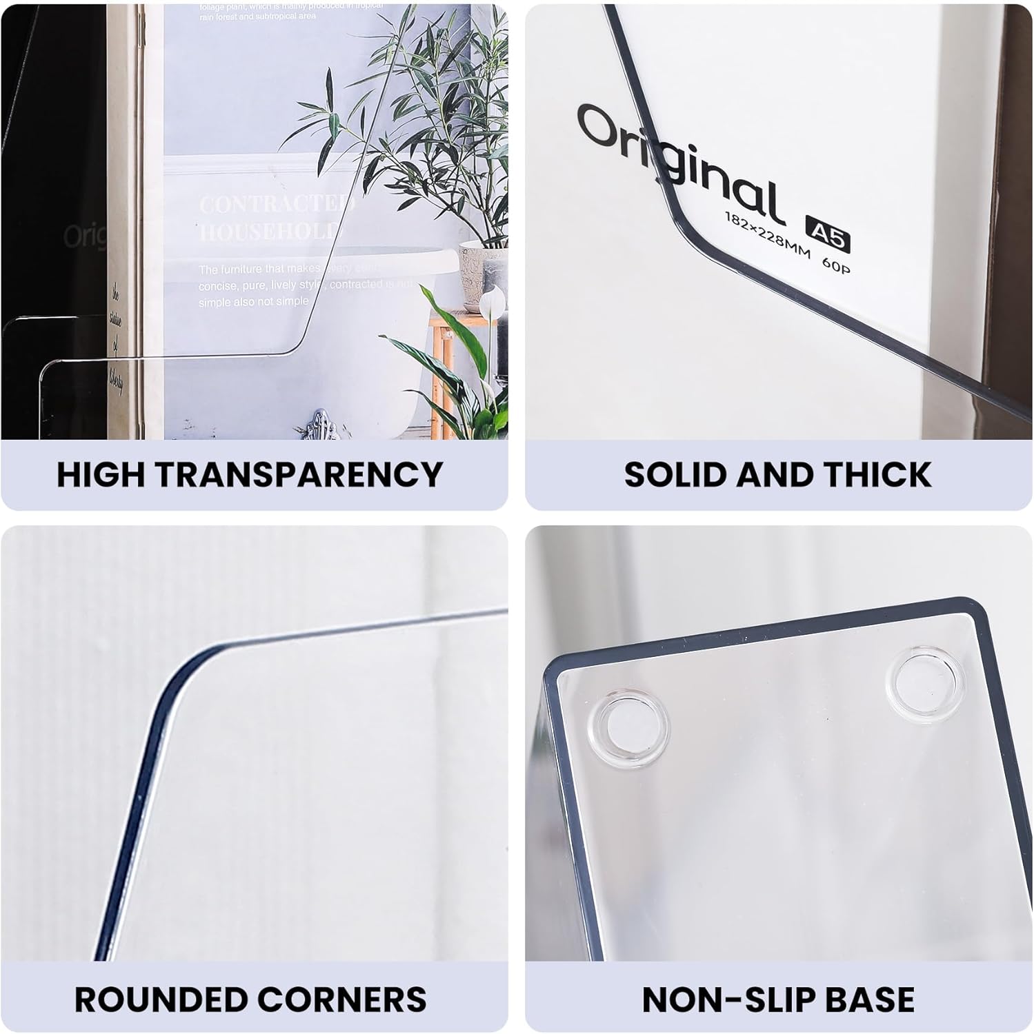 - Clear File Organizer: Our acrylic magazine holder is transparent and easy to see. This clear office desk organizer is a great choice for you to keep magazines, files or binders organized and easy to find you need
