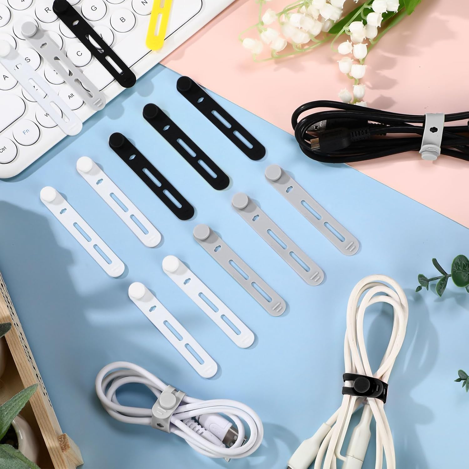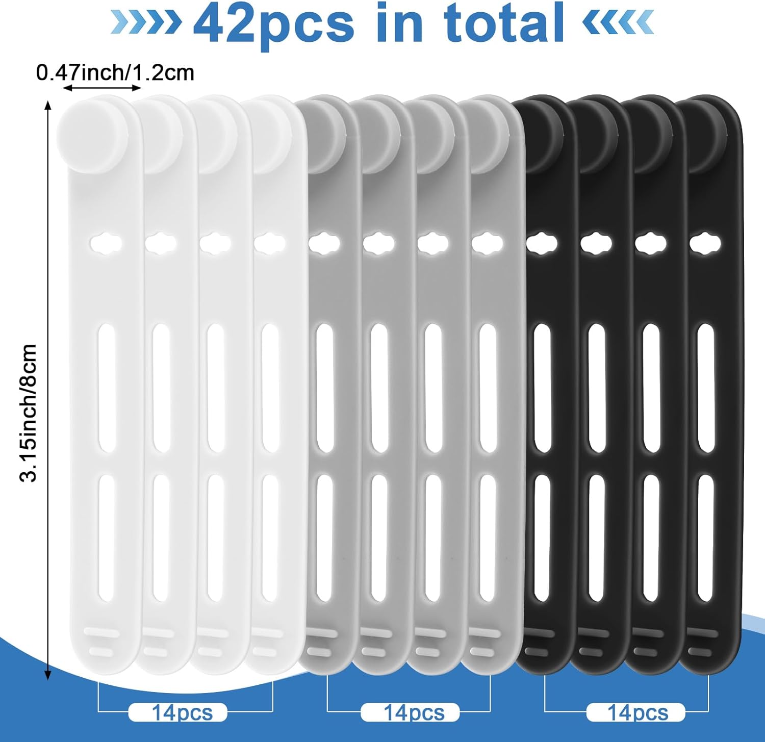 42 Pcs Silicone Cable Ties Reusable Cord Straps Multipurpose Elastic Cable Organizer for Bundling Fastening Earphone Phone Charger Home Office School (Black, White, Gray,3.15 Inch)