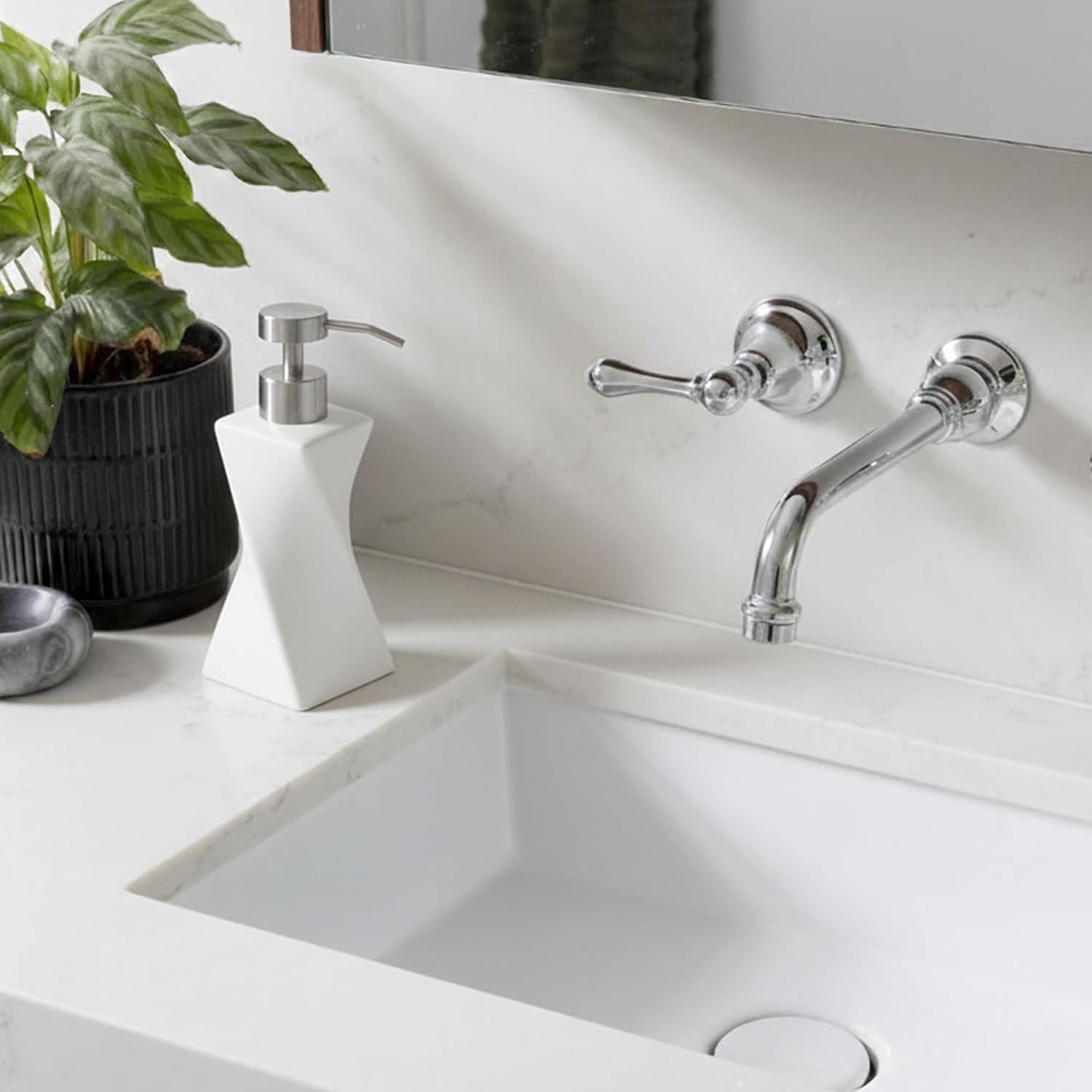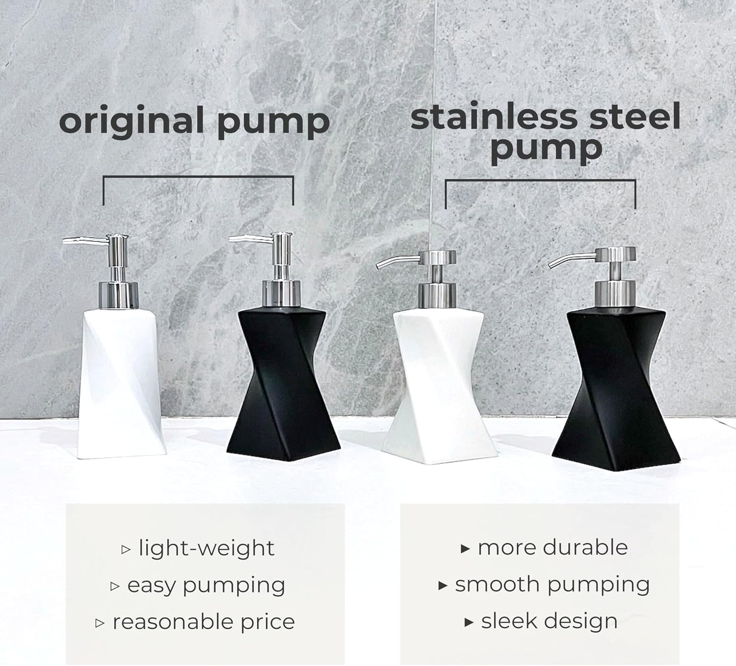 - MODERN MINIMALIST AESTHETIC: The perfect centerpiece for modern bathroom decor. Its sleek white body and silver stainless steel pump blend seamlessly with minimalist or mid-century styles.