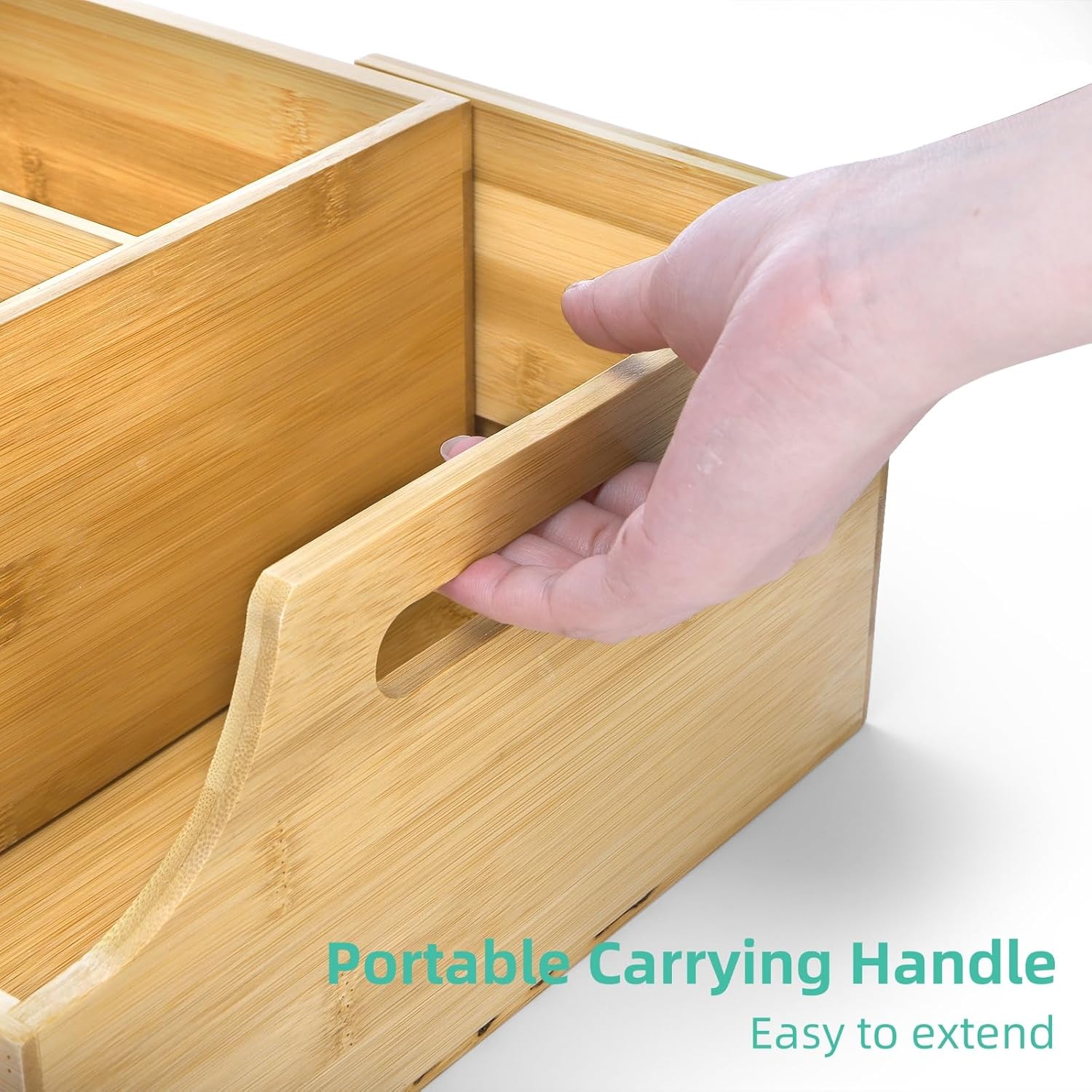 Coffee Station Organizer for Countertop, Bamboo Coffee Bar Condiment Organizer, Extendable Tea Condiment Storage for Bar Decor, Kitchen, Office, 7 Compartment