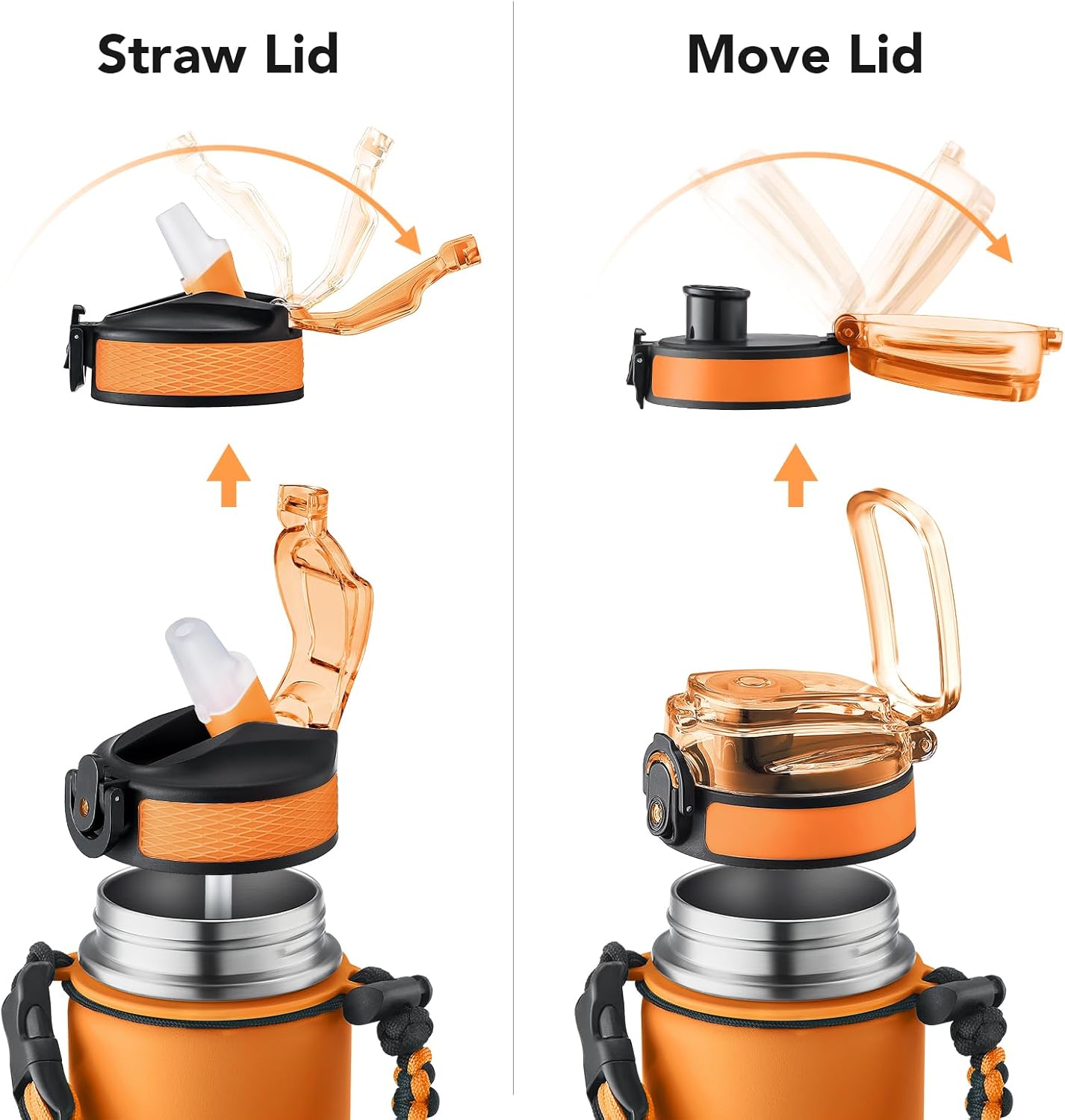 - Insulated water bottle 24 oz: 24 oz insulated water bottle has a matte finish and comes with 2 lids (Lid with Straw/No Straw) and a Paracord handle for easy portability; Its wide mouth makes it easy to fill, pour, and clean, and the leak-proof cap ensures worry transport.