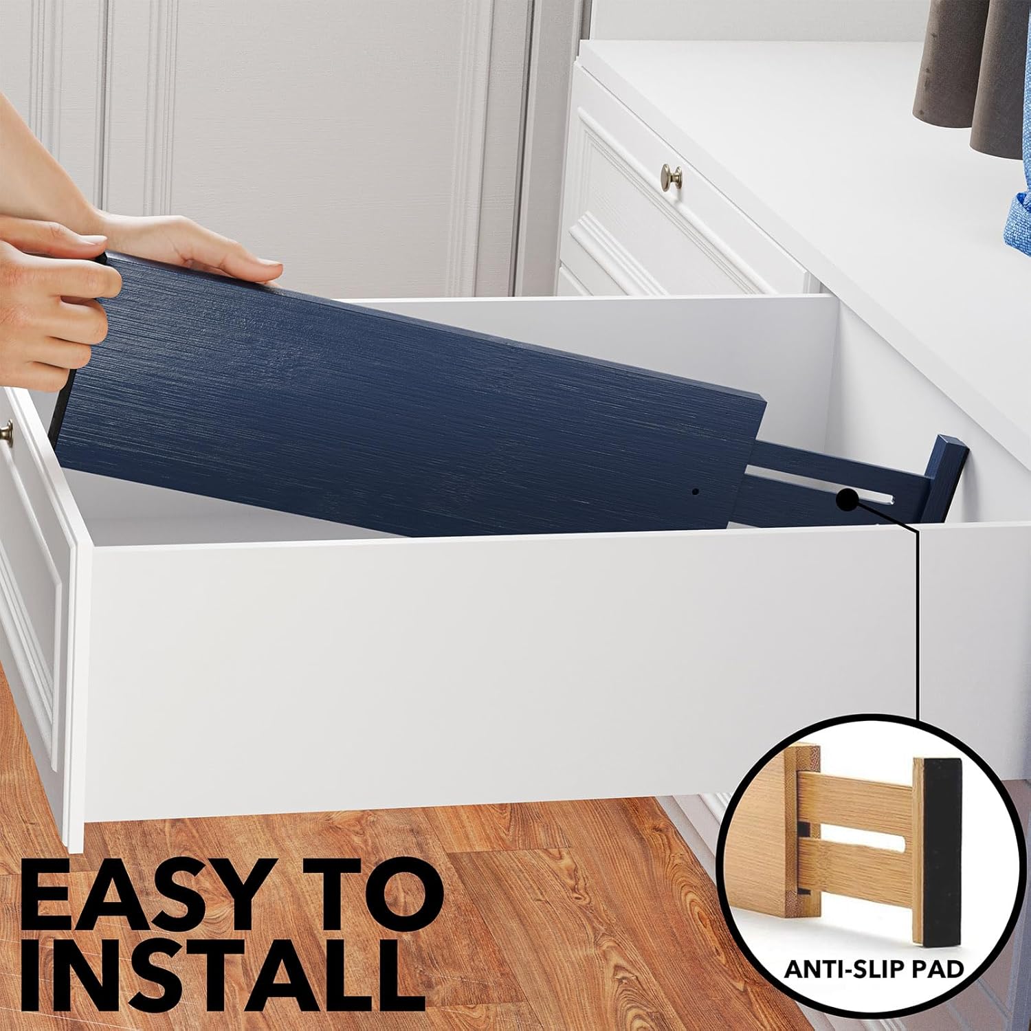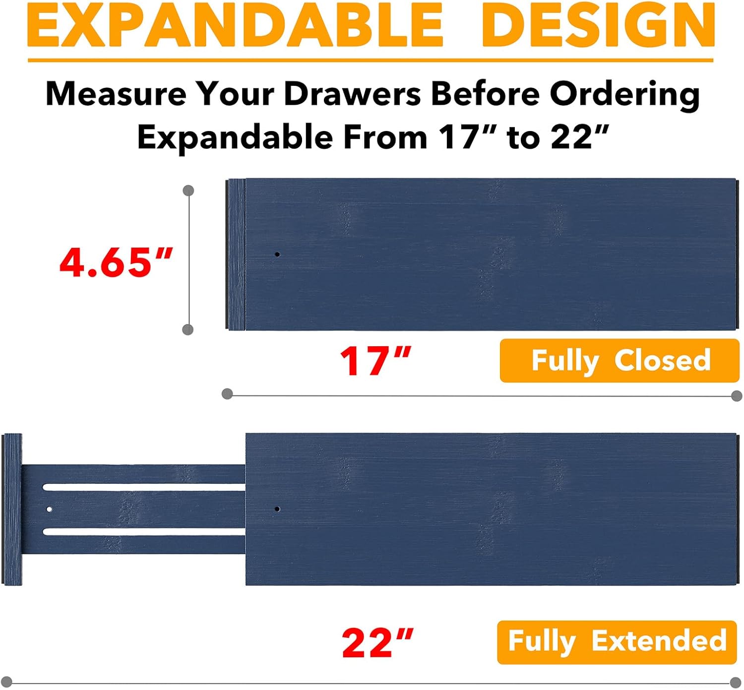 SpaceAid Bamboo 4 Pack Dresser Drawer Dividers, 4.65“ High Adjustable 17“-22” Drawer Organizers, Expandable Organization for Clothing, Clothes, Dressers, Navy Blue
