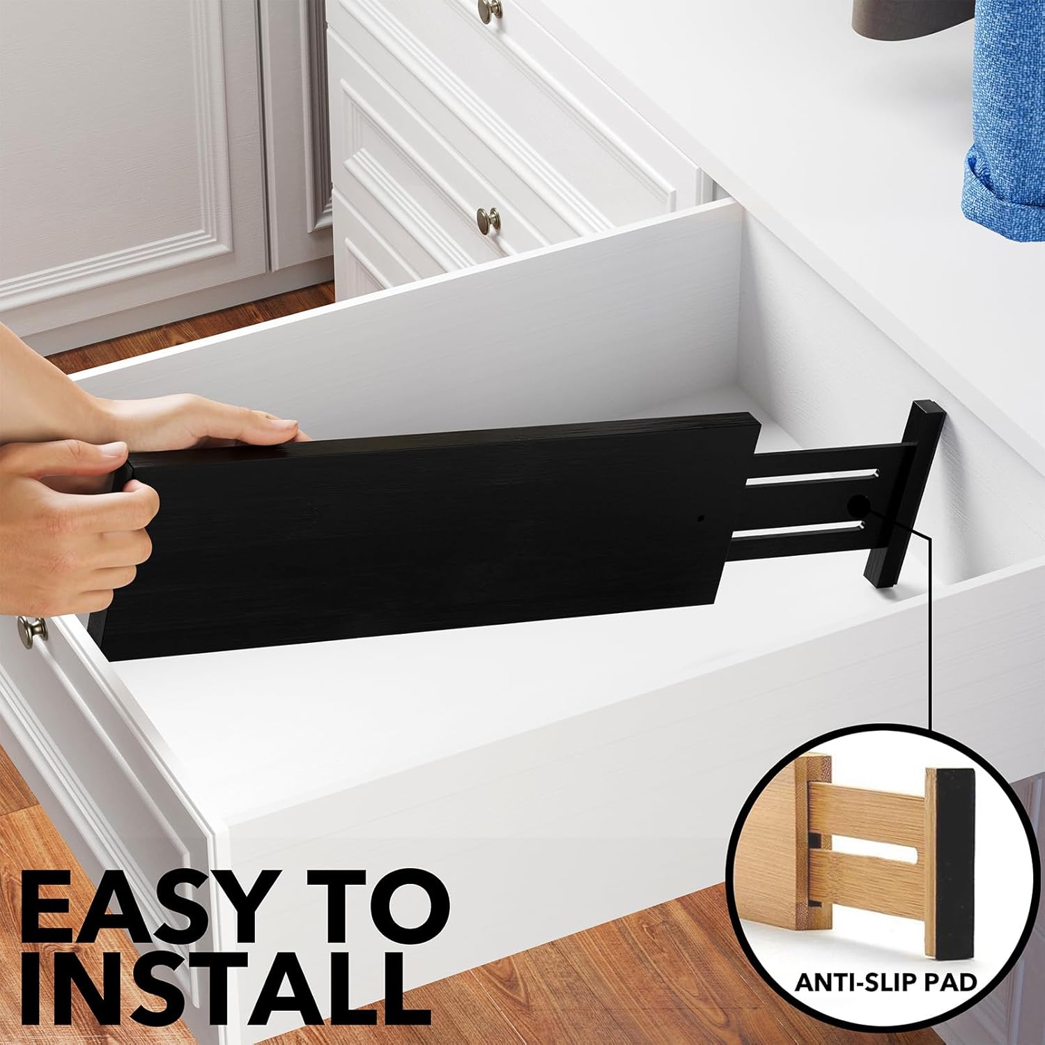 SpaceAid Bamboo Dresser Drawer Dividers 6 Pack, 4.65“ High Adjustable 17“-22” Drawer Organizers, Expandable Organization for Clothing, Clothes, Dressers, Black
