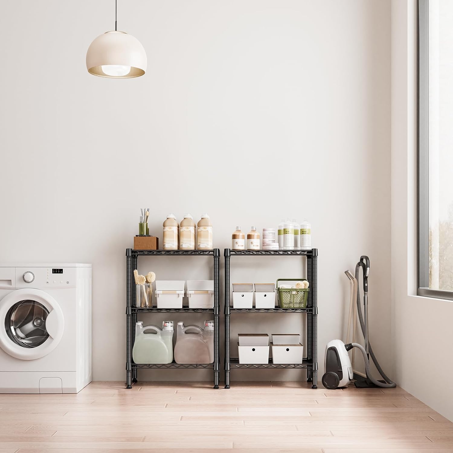 - ADJUSTABLE HEIGHT: Enjoy the option for a completely customizable metal shelving unit. The build allows for height adjustments, allowing you to adjust accordingly to your needs