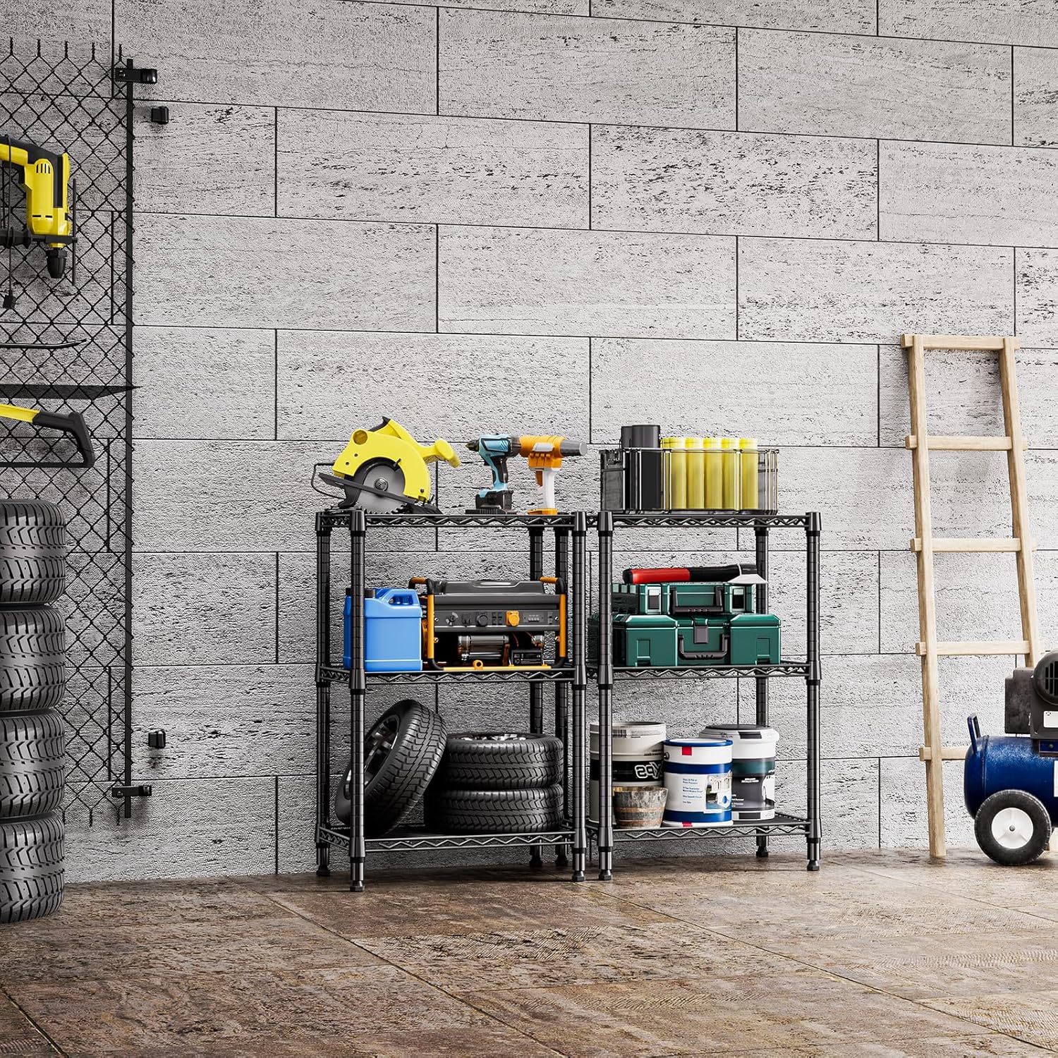 - VERSATILE DESIGN: The shelving units offer incredible versatility. It is suitable for use in a garage, balcony, pantry, and kitchen. Four 360° rotatable wheels ensure its flexibility and can be easily moved around. Its special coating ensures water resistance, making it accommodated for humid environments like bathrooms