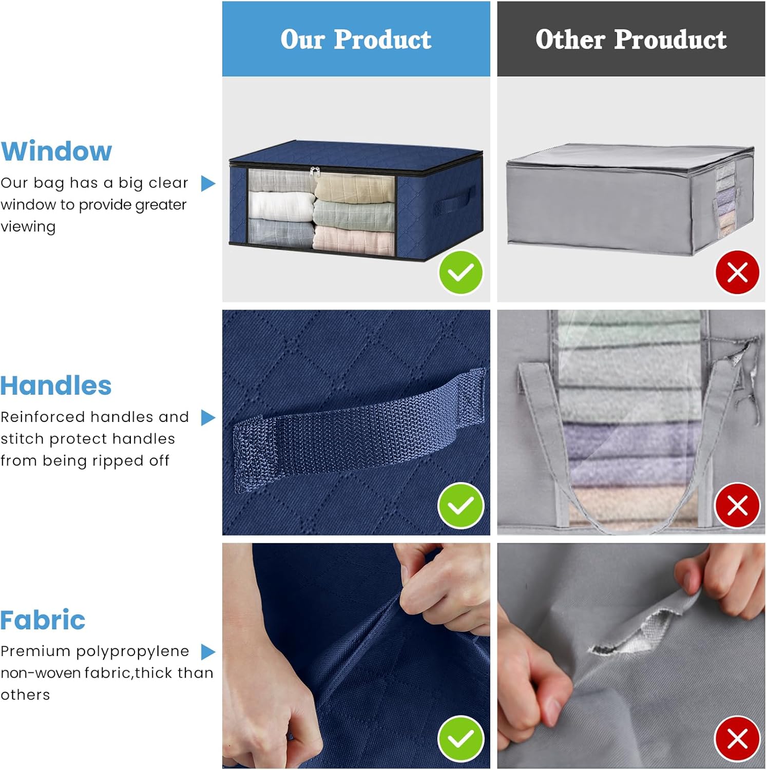 HomeHacks Storage 10-Pack Clothes Organizer Storage Bags Foldable Storage Box with Large Clear Window Sturdy Handles for Closet, Dorm, Pillows, Bedding, Clothes, Blankets, 35L, Blue