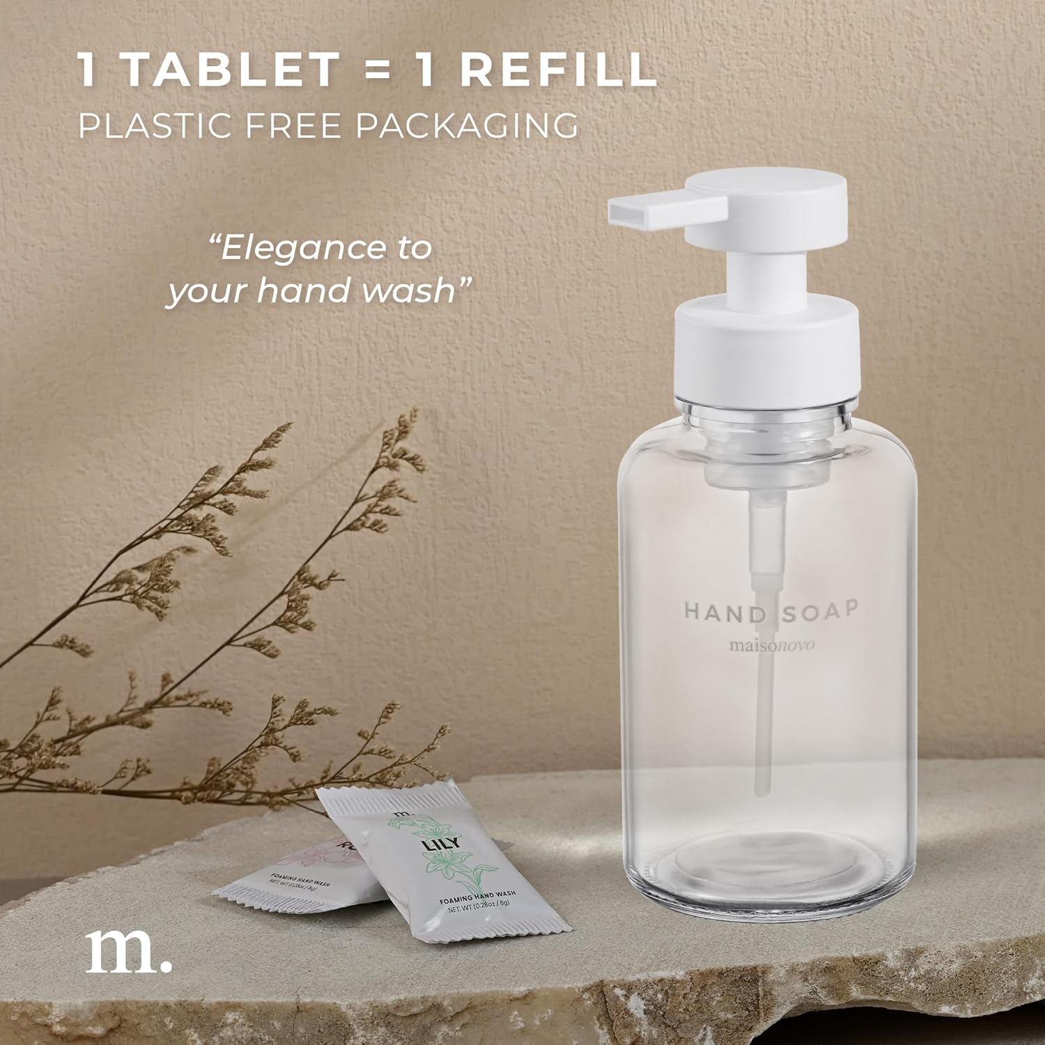 MaisoNovo 14 oz Clear Glass Foaming Soap Dispenser with White Pump + Mixed 4 Pack Foaming Hand Soap Refill Tablets