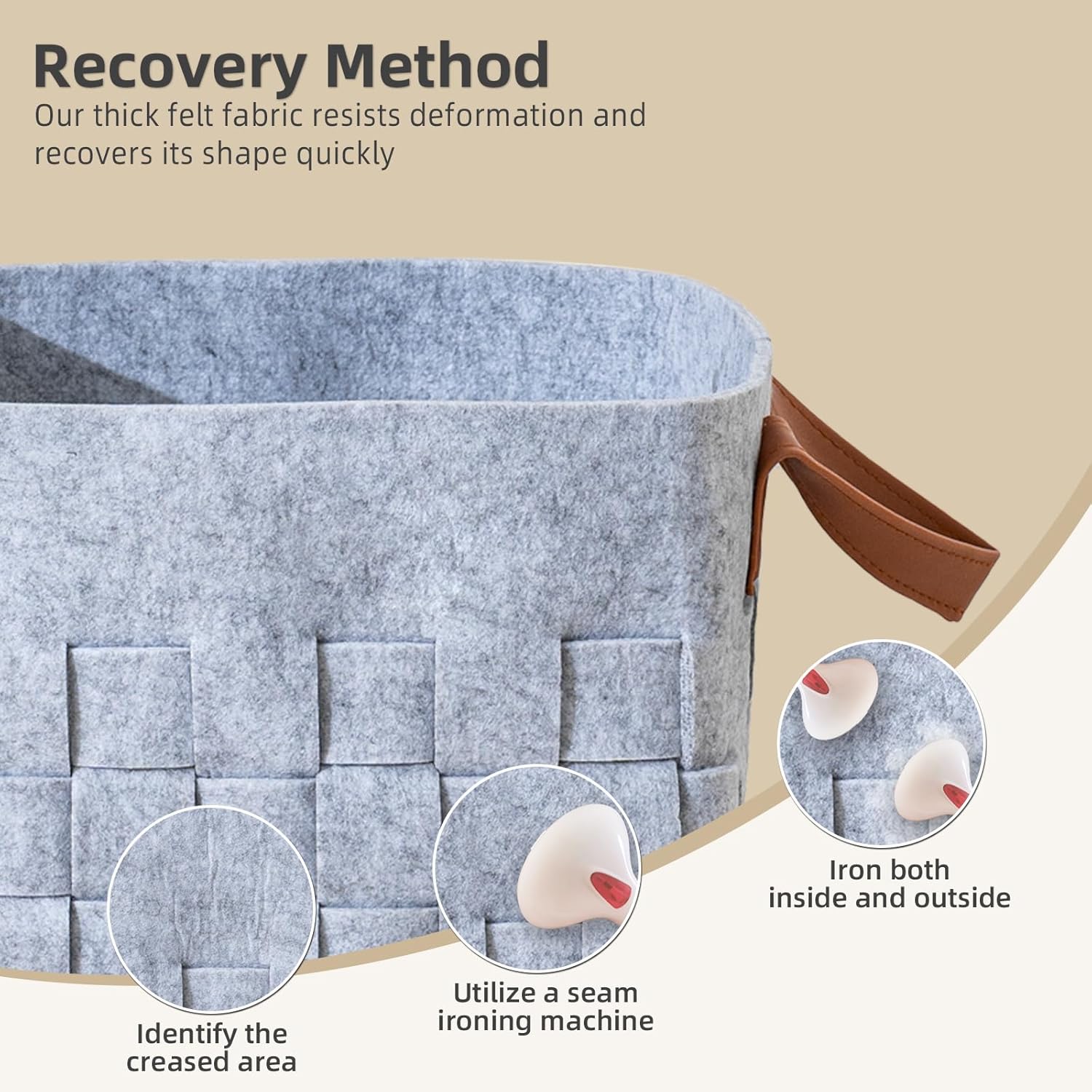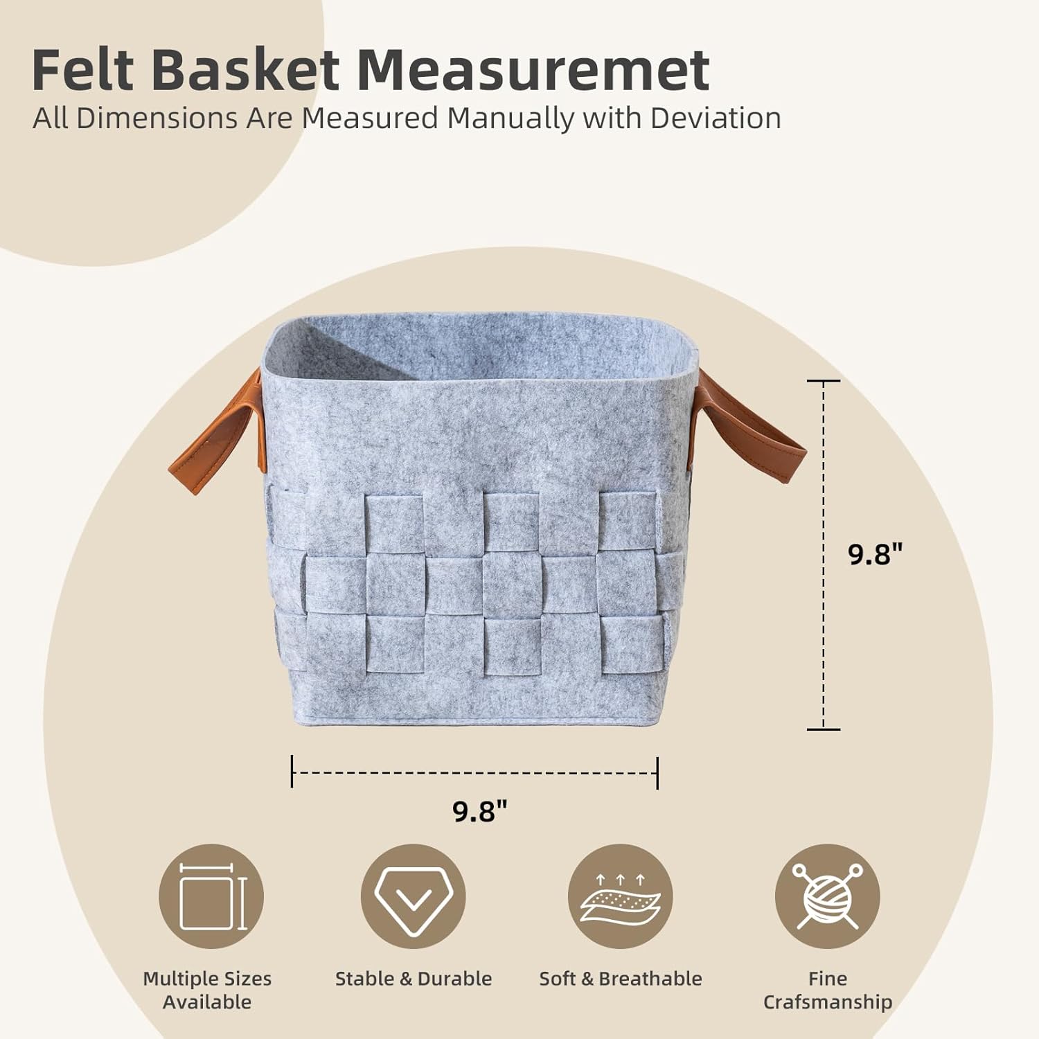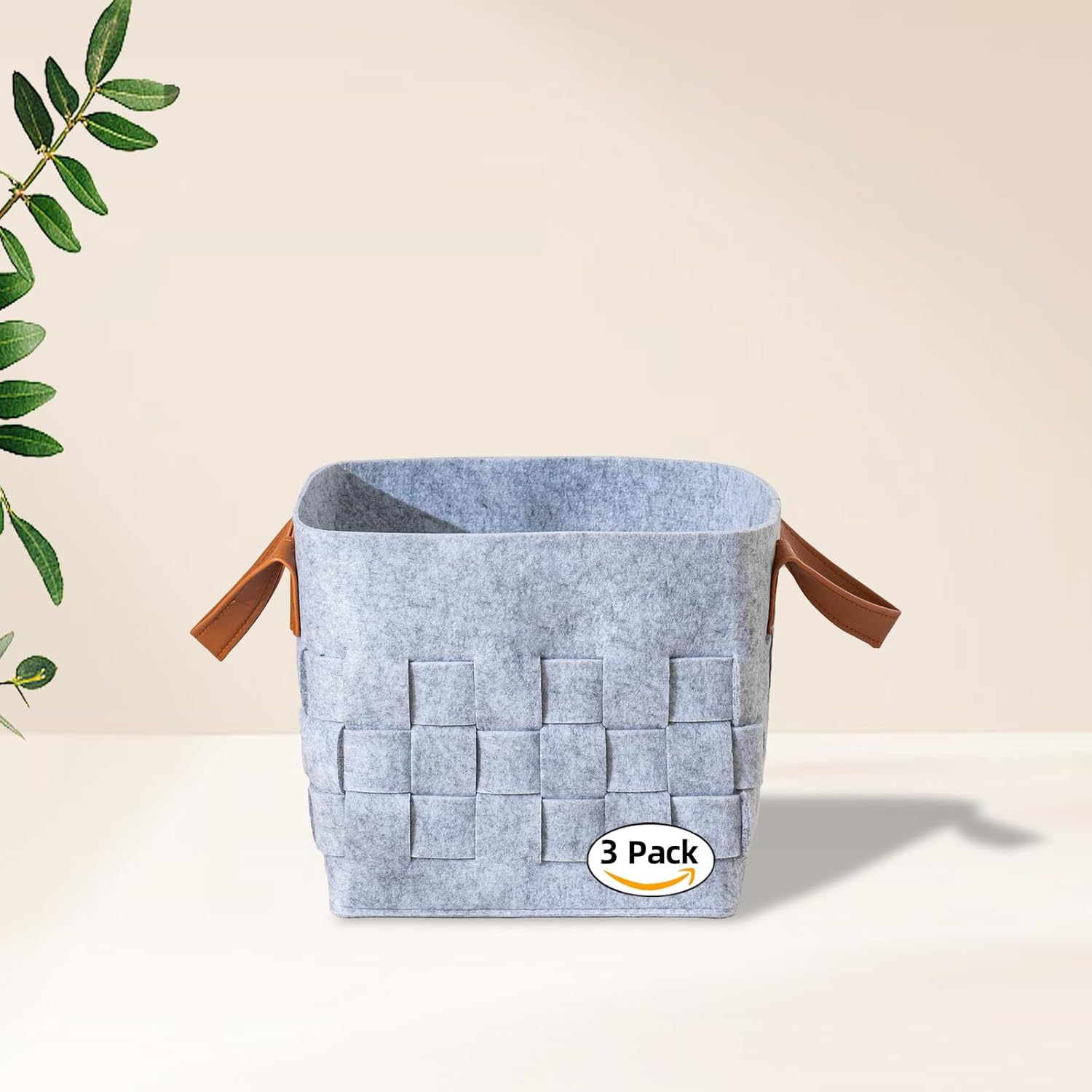 - Keep Your Home Neat and Stylish: The 3-piece felt basket set is perfectly suited to your needs, helping you organize your household clutter and keep your living room and bedroom clean and tidy.