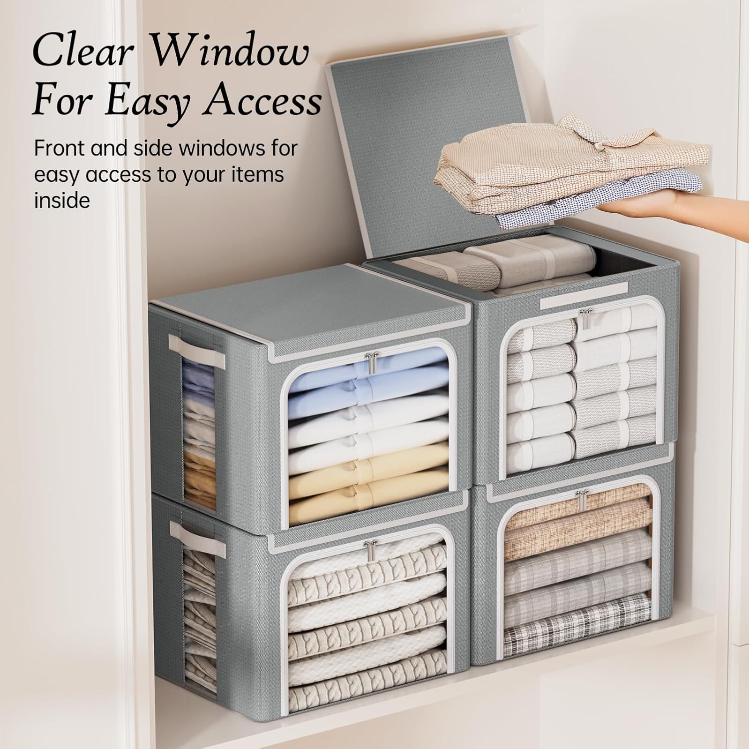 - CLEAR FRONT & SIDE WINDOWS - No more guesswork! Our clothing storage bins has transparent windows on both the side and front, it’s easy to identify contents at a glance. Whether you’re organizing seasonal clothing or storing holiday decor, the clear panels help you find your essentials quickly, adding convenience to your home organization
