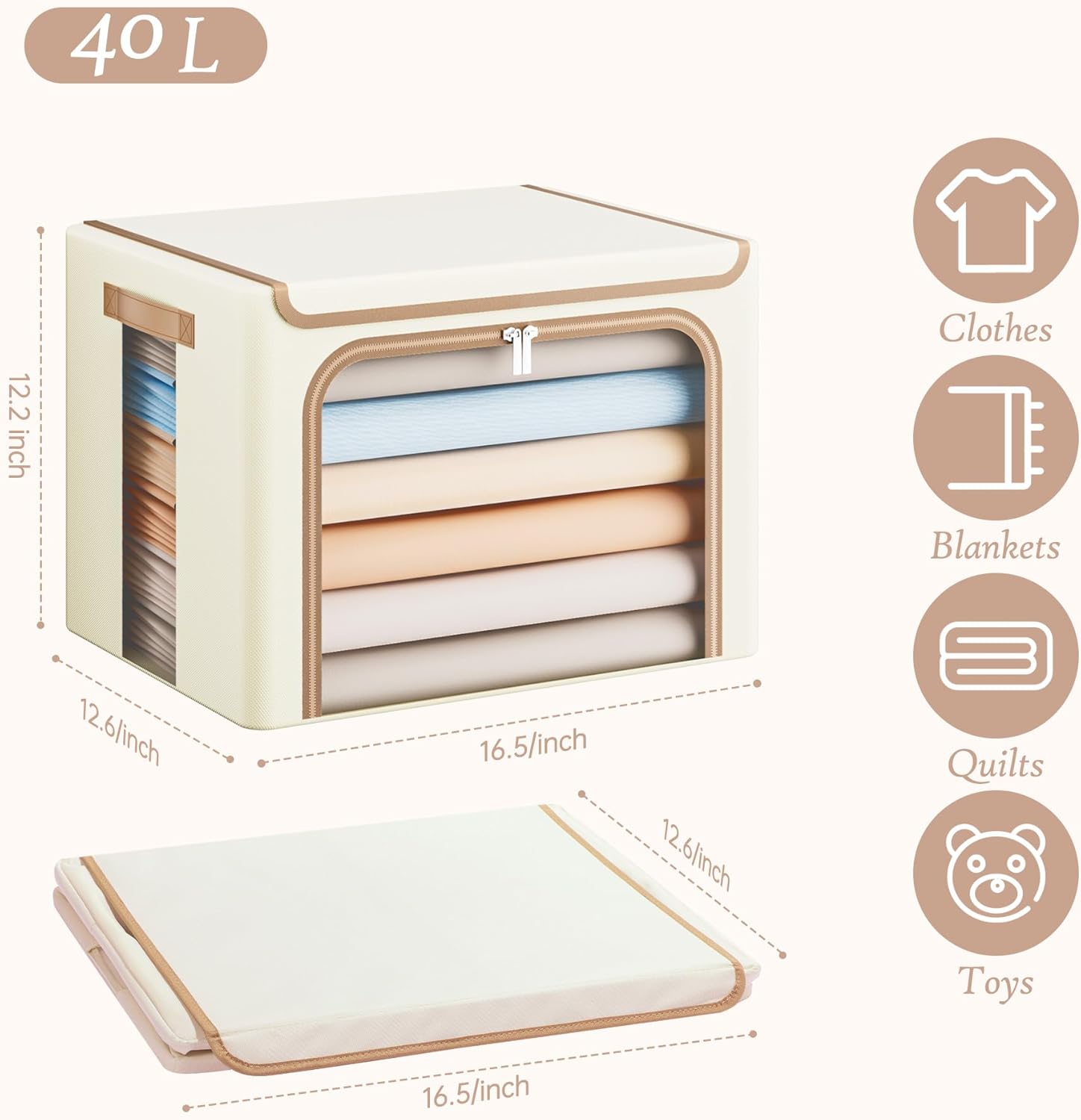 - Spacious Storage: With 40L and 66L options, our clothes storage boxes accommodates seasonal clothing, blankets, decorations, and more. Whether for decluttering or long-term storage, its spacious interior is ready to meet your needs. Perfect for families or anyone looking to maximize their storage capacity