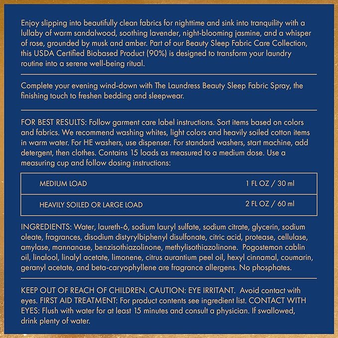- CURATE YOUR SLEEP ROUTINE: Complete your evening wind-down routine with our The Laundress Beauty Sleep Fabric Spray, the finishing touch to freshen and smooth bedding and sleepwear. Create a layered fragrance experience by pairing Beauty Sleep detergent and fabric spray for added fragrance depth and longevity