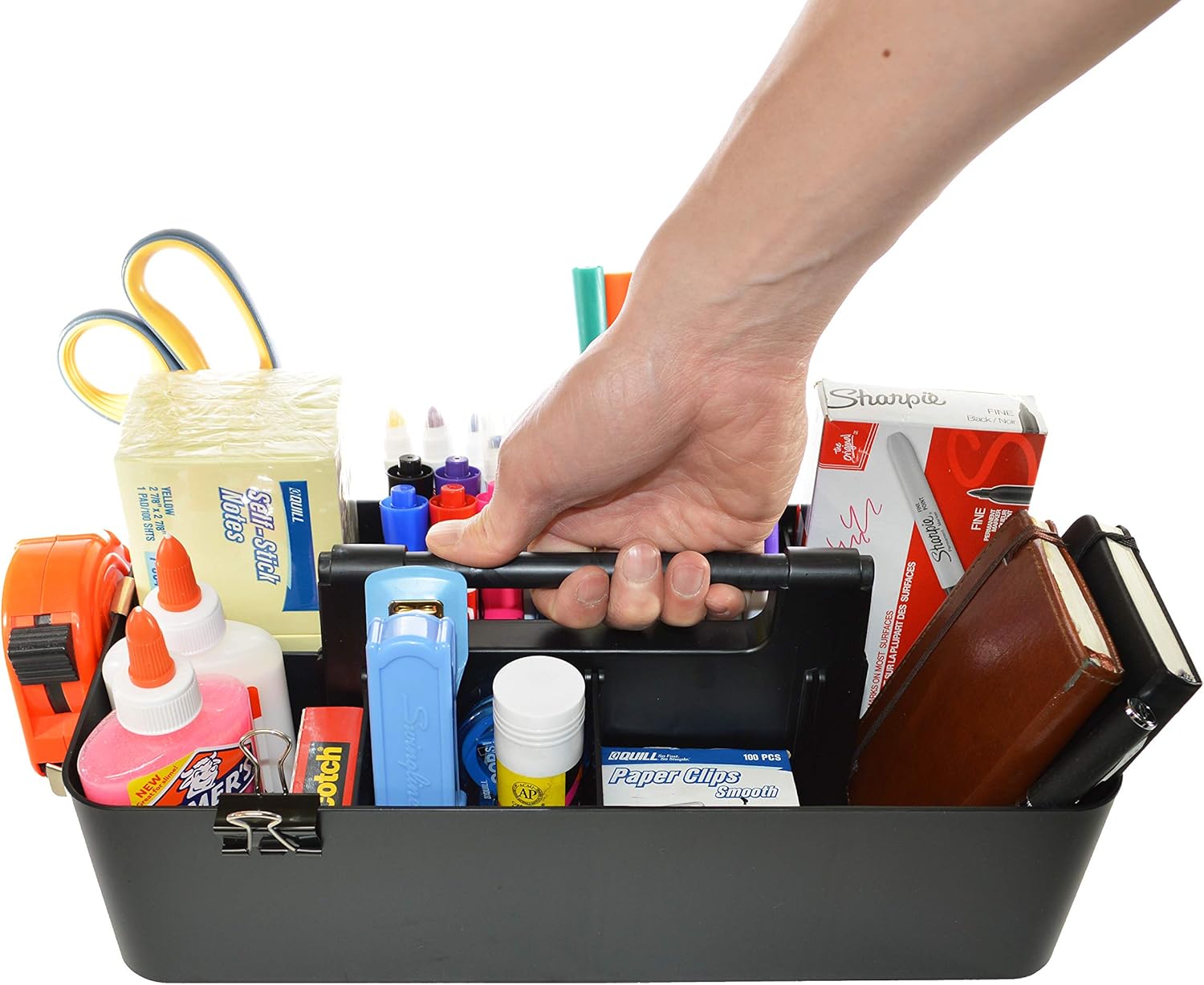 - PORTABLE: Equipped with an easy-carry round smooth handle, this caddy makes transporting goods from shelf to cabinet or desktop a breeze. Just grab and go! The open tops and divided compartments make it easy to see what’s inside and quickly grab what you need. Use these convenient storage caddies to keep office desk items organized, children's crafting items tidy, and school supplies in check. Perfect for both home and commercial workspaces.