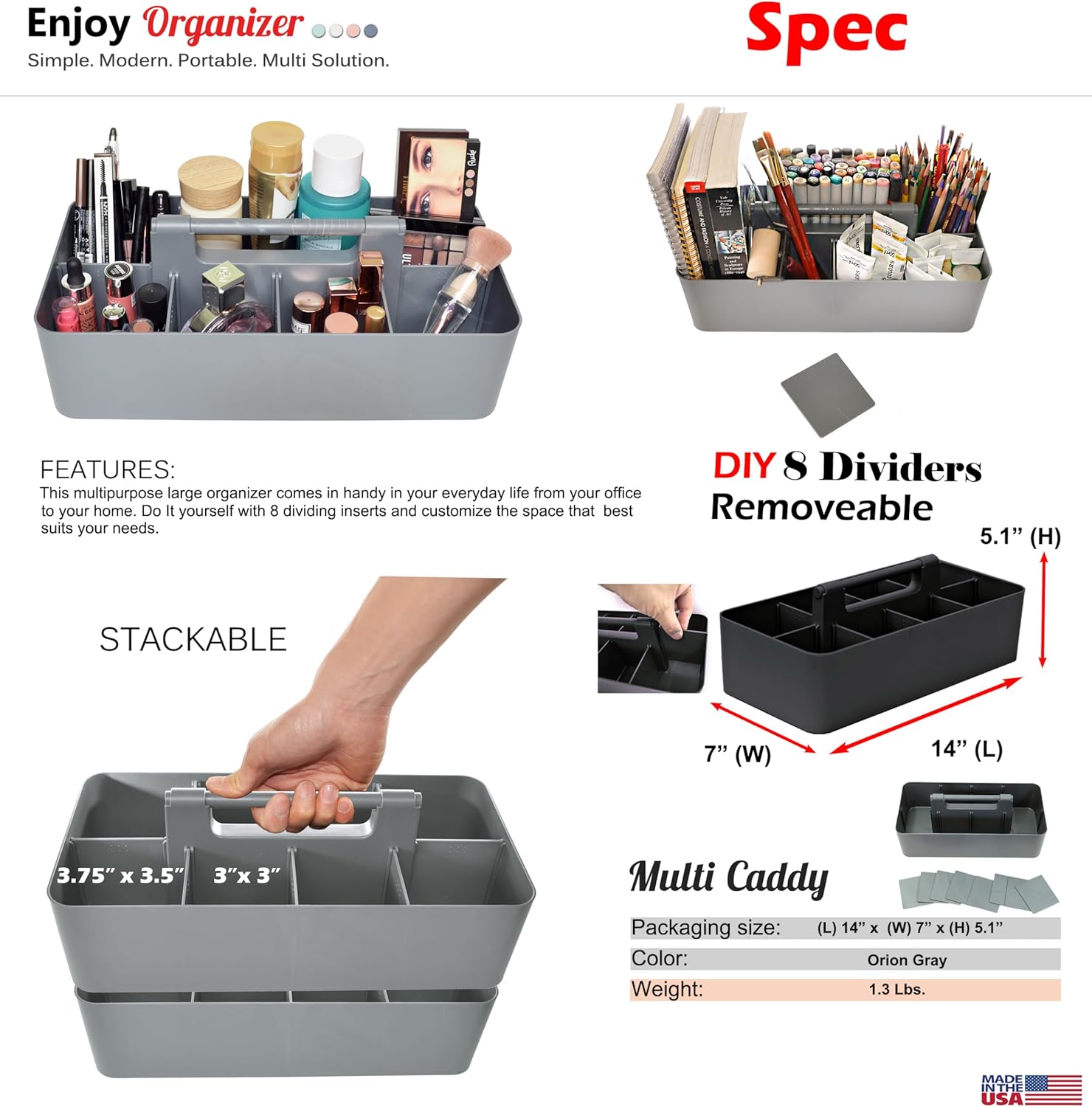 - SIZE: Each caddy measures 14" x 7" x 5.1" high, making it a spacious solution for various storage needs. The caddy is easy to clean with water and soap, ensuring hassle-free maintenance. Available in a 2 PACK - Enjoy Organizer.