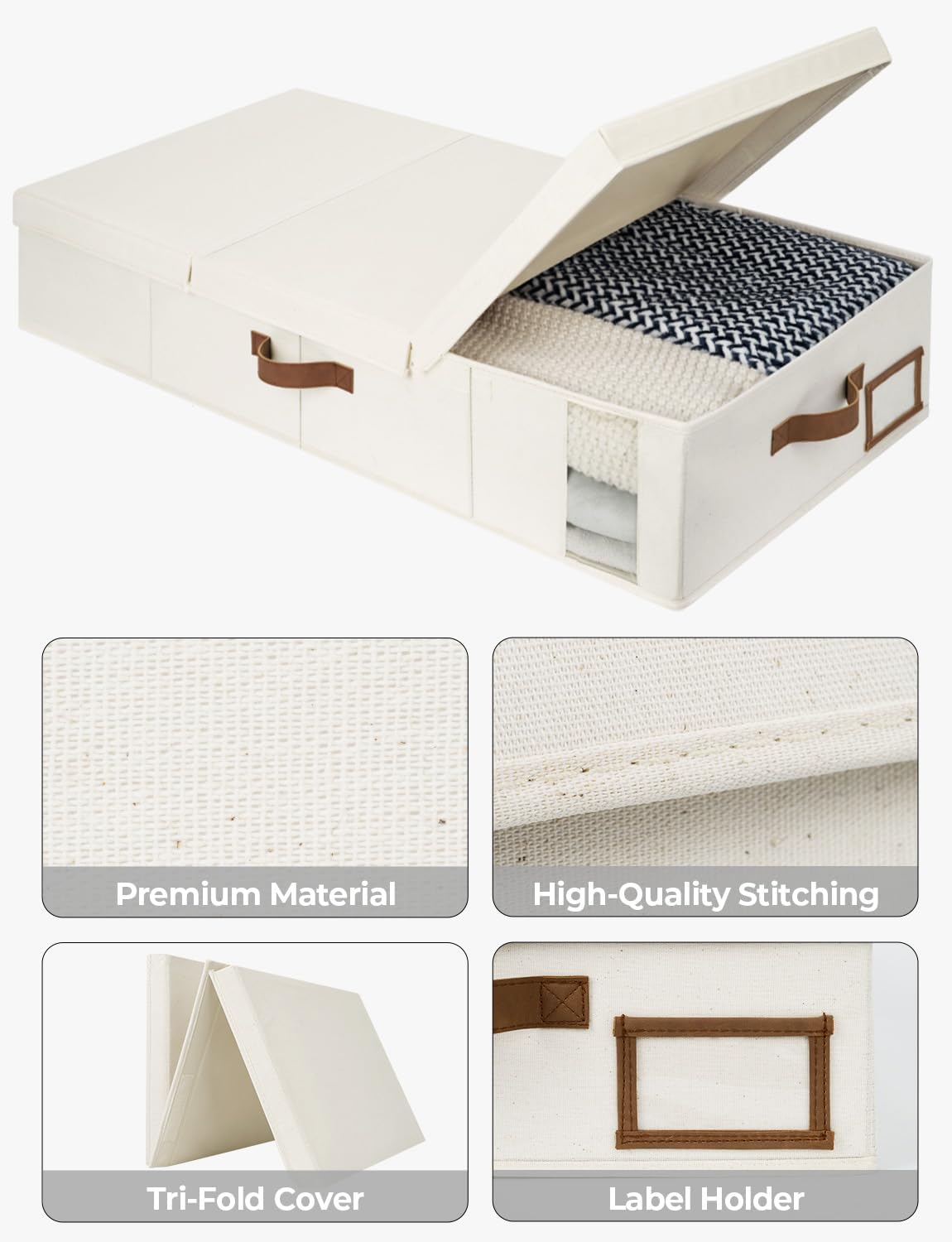 - Foldable: The lid of this underbed organizer can be folded into 3 parts, so the contents can be accessed from both sides for convenience. These storage boxes can also be folded and stored easily when not in use.
