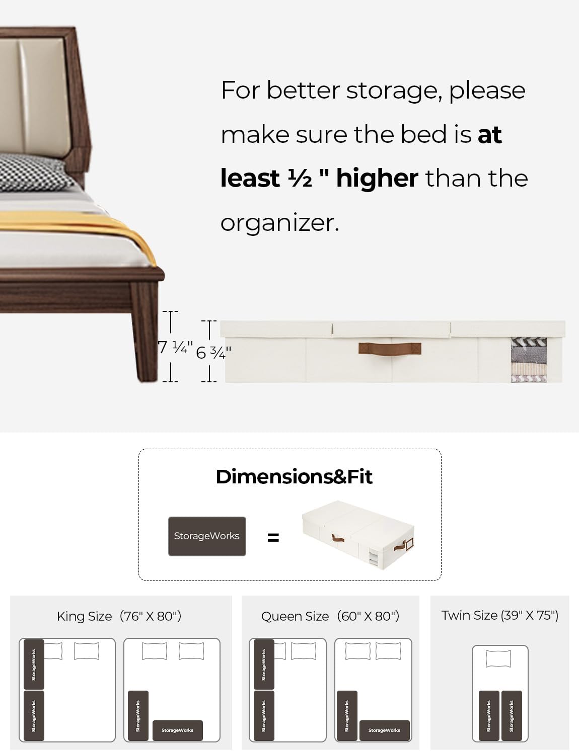 - Large Capacity: With dimensions of 39 ¼"L×17"W×6 ¾"H inches, the under bed storage containers offer ample space for storing a range of items, including clothes, blankets, bedding and shoes, maximizing your underbed storage space and organizing your bedroom. Please make sure that your bed is at least 7 inches high for better use.