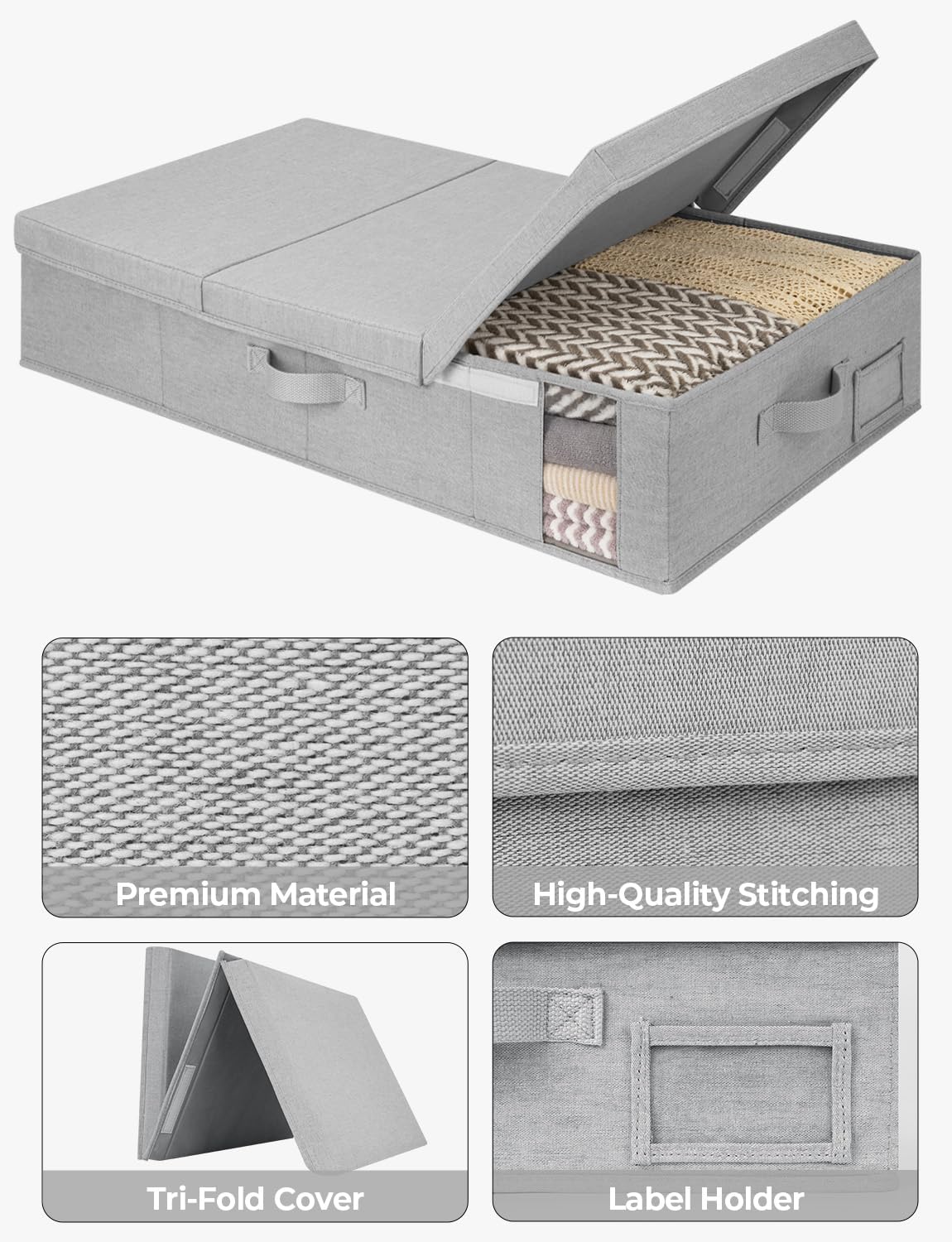 - Foldable: The lid of this underbed organizer can be folded into 3 parts, so the contents can be accessed from both sides for convenience. These storage boxes can also be folded and stored easily when not in use.