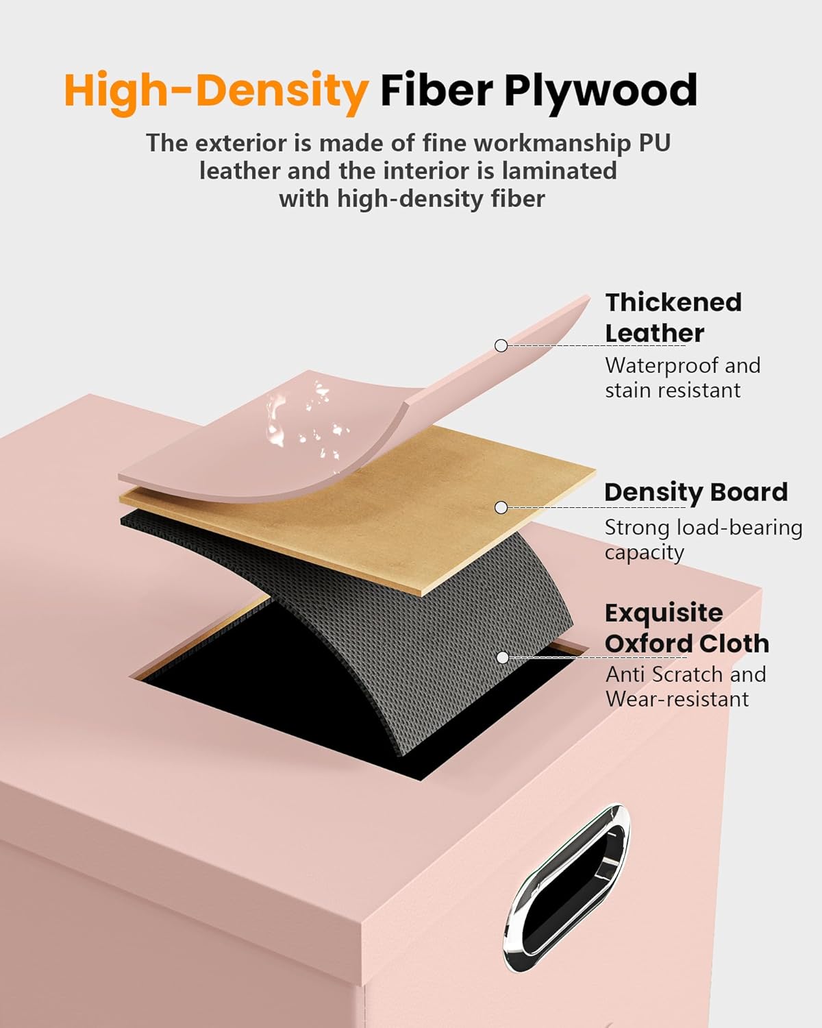 Oterri File Organizer Box with Lid, Portable Hanging File Box for Letter/Legal Files, Office/Decor/Home, Cream-pink (Leather), 1 Pack