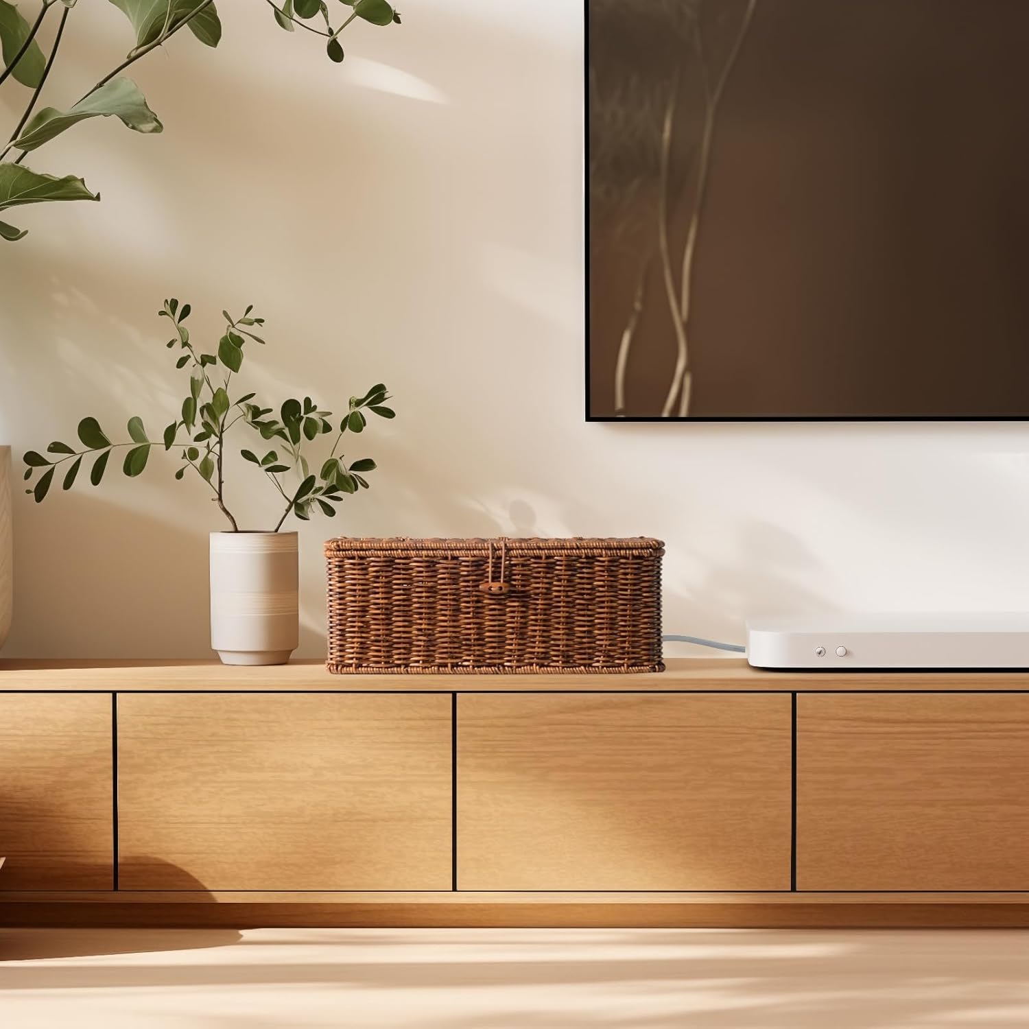 - Safe Material & Ventilation System: Brownlily cord management box ensures a sturdy thickness with safe faux rattan material. The breathable cord holder effectively prevents surge protector power strip from overheating due to its multiple air holes