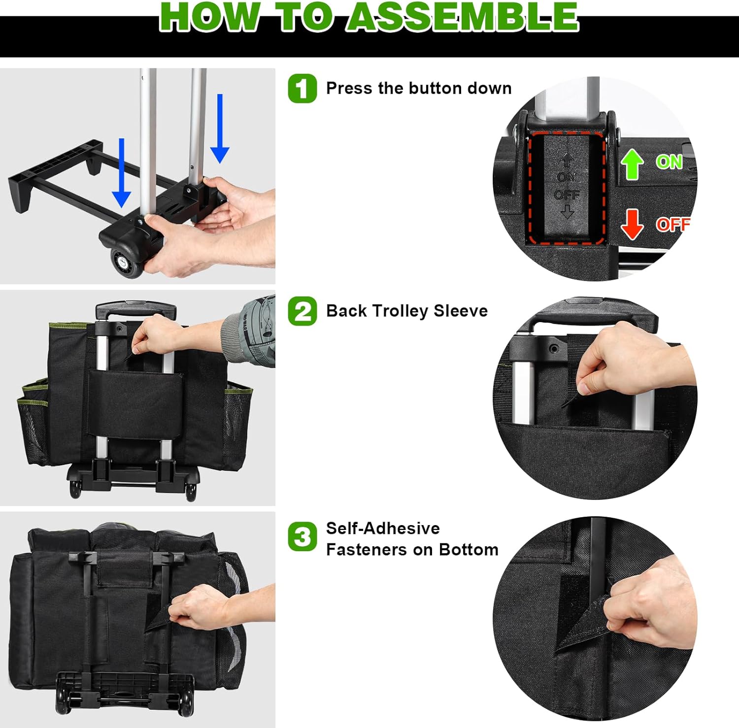 - Portable Cleaning Supply Caddy: This 16-inch rolling caddy bag with a detachable trolley, various heights can be adjusted to meet more needs, up to 35.8in/91cm, and can also be folded to save spaceoffers convenient storage and mobility for cleaning supplies