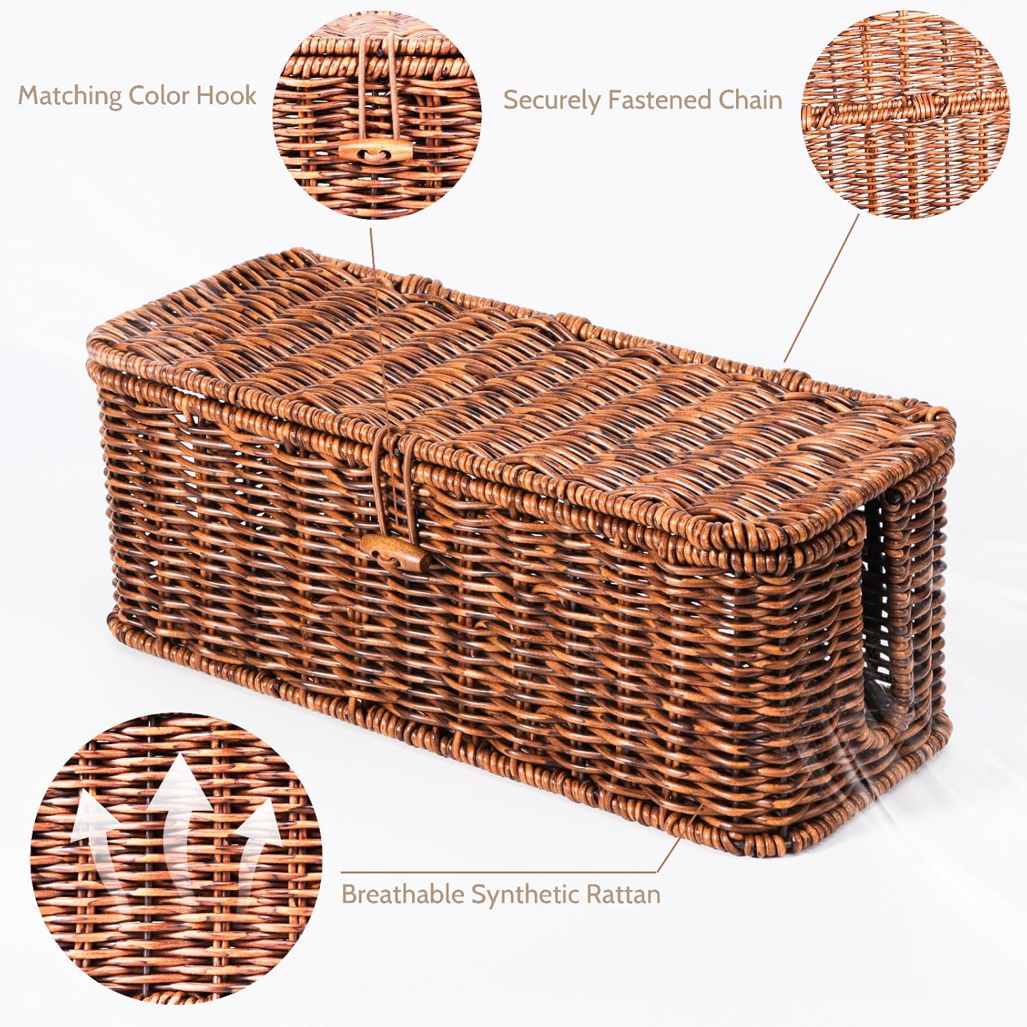 BROWNLILY Rattan Wire Storage Box, Handmade Cord Organizer for Desk Cord Hider Outlet Covers Baby Proofing for Power Strip TV PC Router Charger Under Desk Cable Management Box