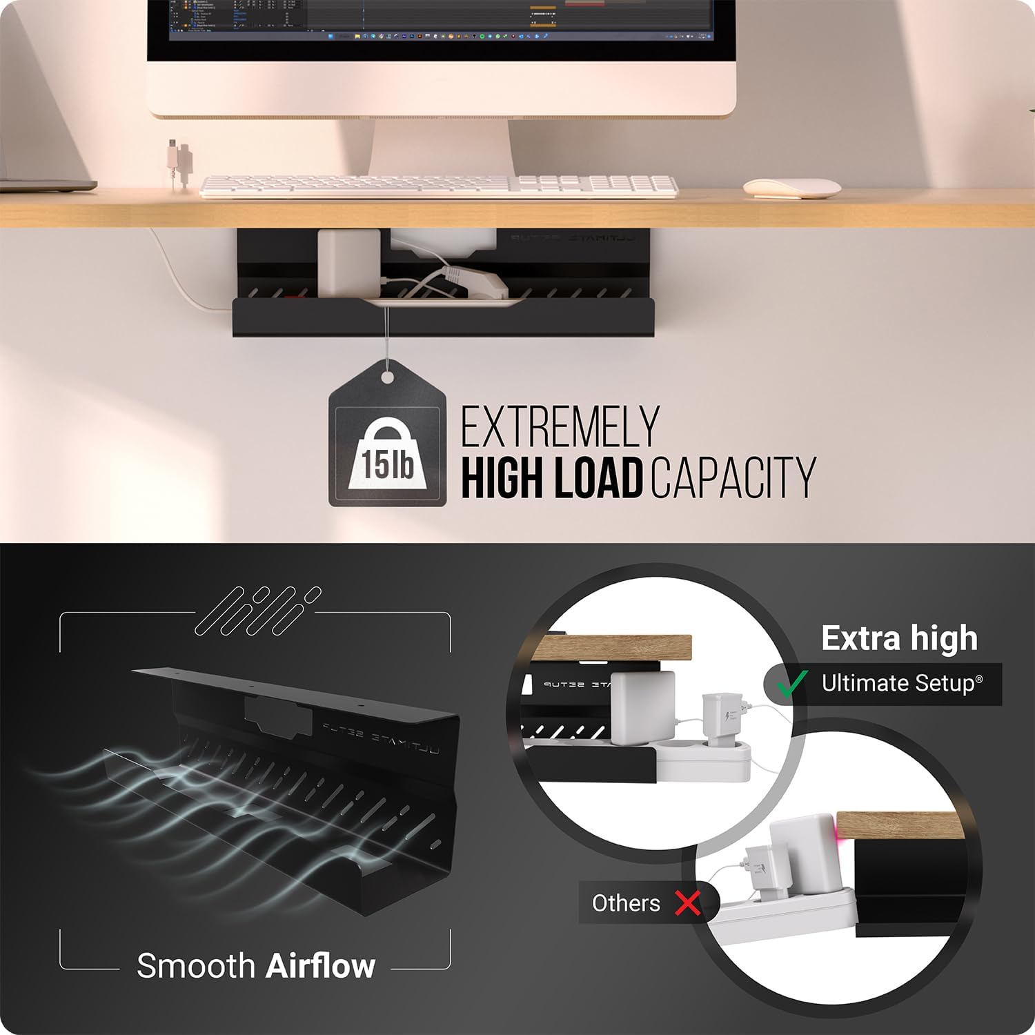 Under Desk Cable Management Tray no Drill – Wire Management - Cord Organizer – Huge Load Capacity – Under Desk Cable Tray no Drill (Black, 1 Piece Set)