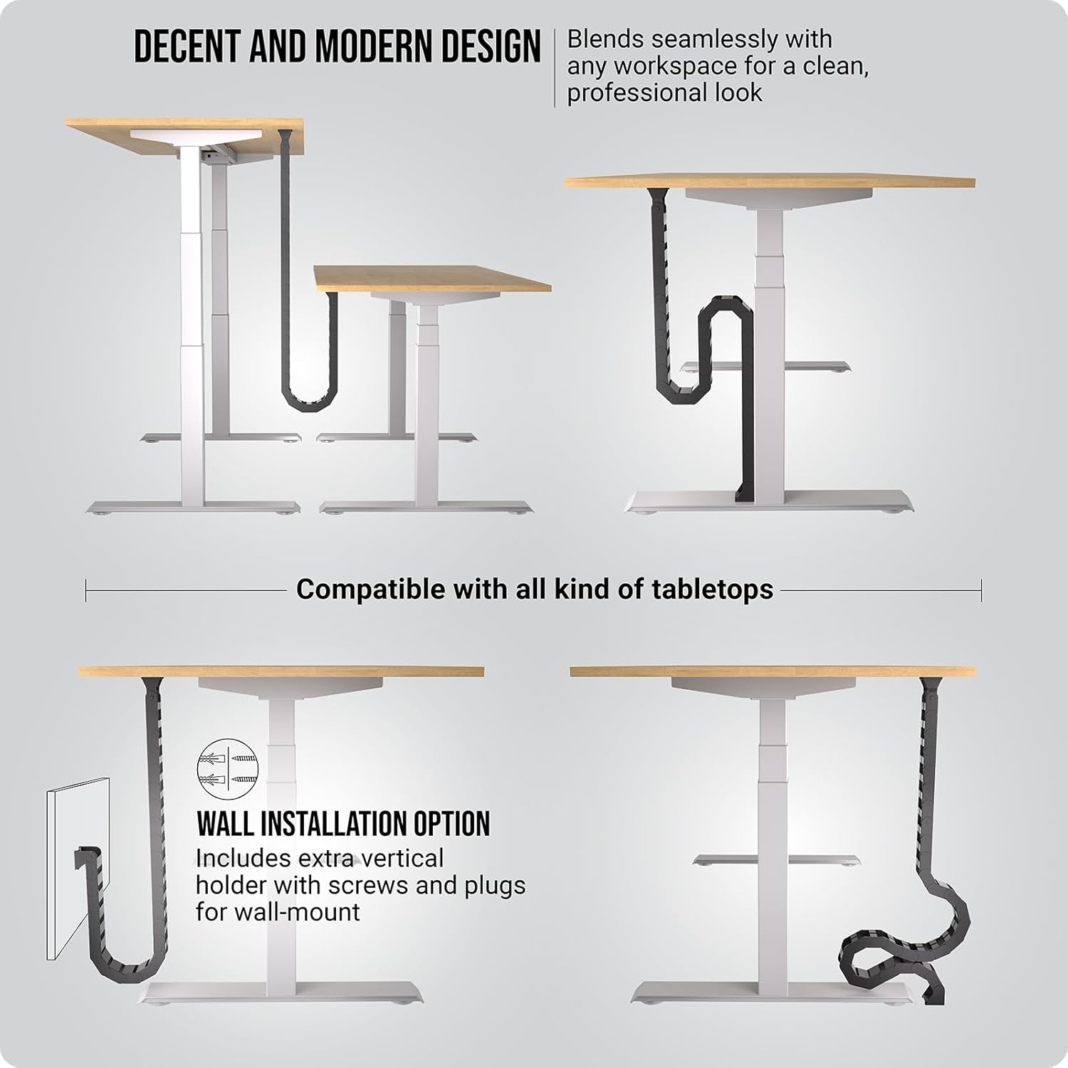 - Aesthetically pleasing: Thanks to magnetic attachments, the standing desk cable management system securely attaches to the table leg, staying in place even as the desk height is adjusted. It ensures a neat and tidy appearance, creating a positive impression at first glance