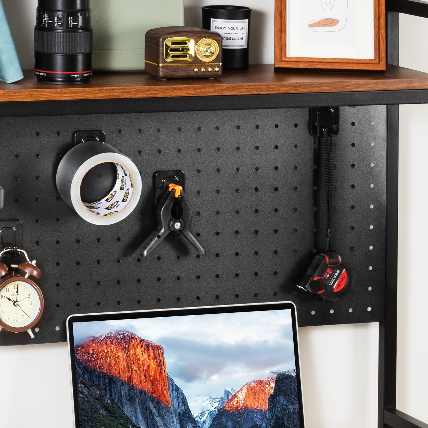 - 【Optimize Desktop Space】:Desk hutch comes with matching pegboard and shelving 2*basketsand 4*hooks, to store small desktop items and let them float, saying goodbye to a messy desktop. desk hutch top shelf Plan the countertop space easily and reasonably, store needed items, and access them quickly and clearly.