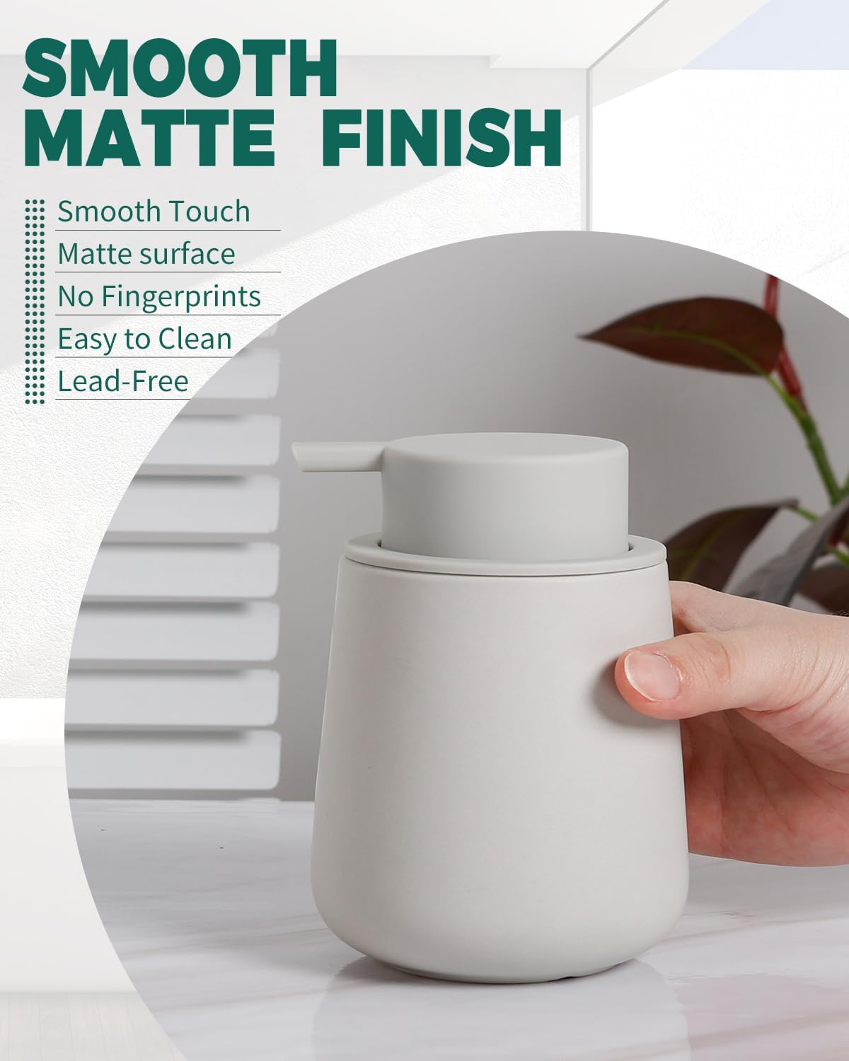 Bosilunlife Ceramic Foaming Soap Dispenser - 12oz Matte Grey Foam Hand Wash Dispenser Bathroom Countertop Soap Dispensers Kitchen Dish Soap Pump Dispenser Liquid Soap Dispenser for Bathroom