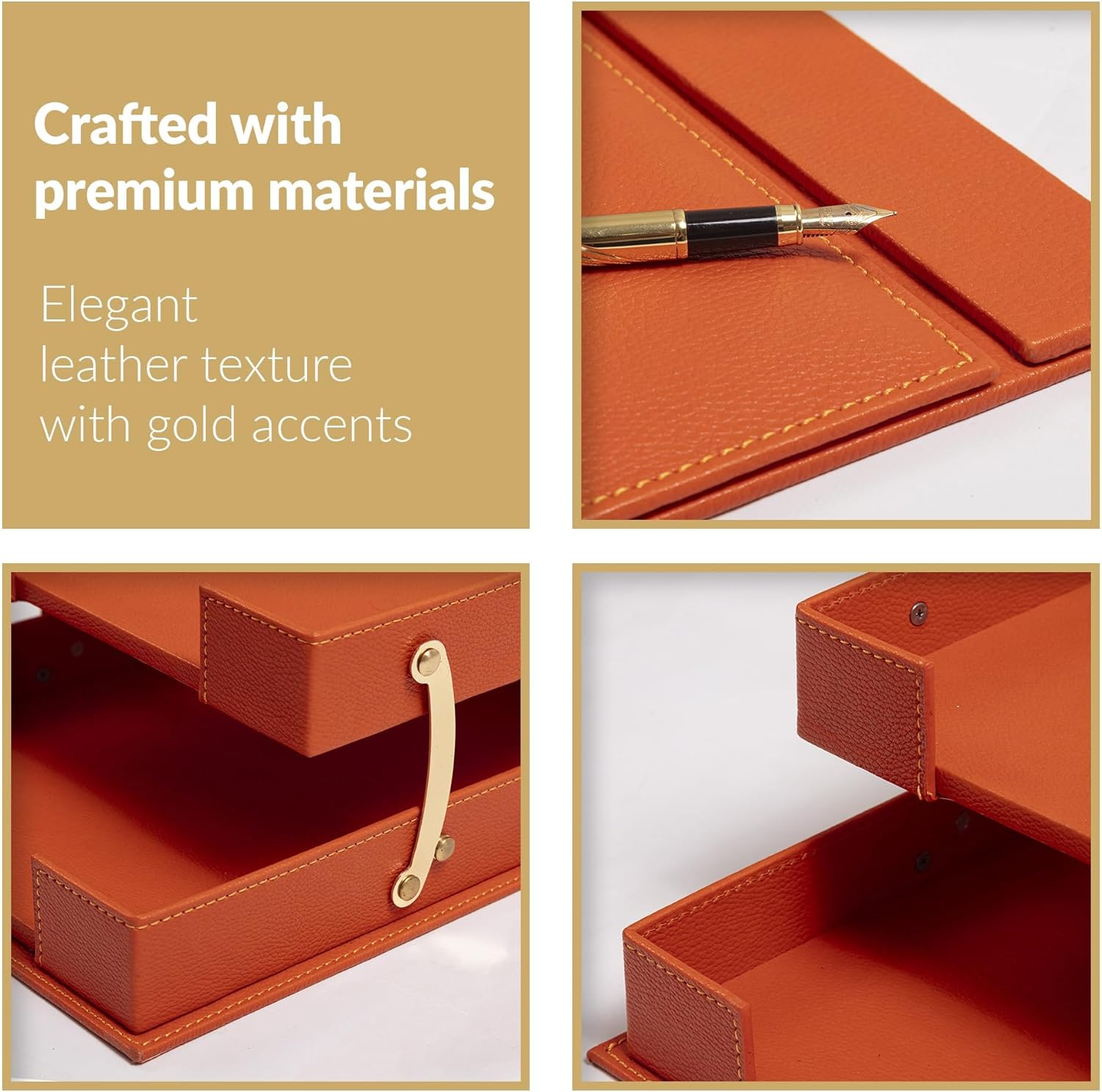 MOOGCO Bonded Set Luxury Leather Desk Pad & Desk Organization Essentials Desk Organizer Leather Desk Organizer