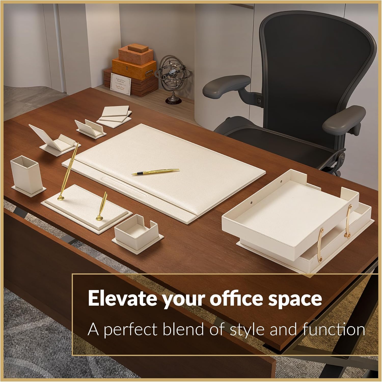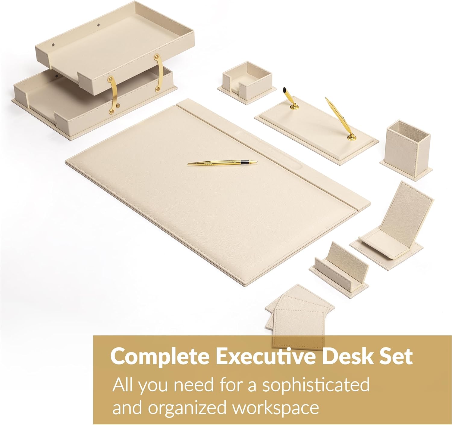 MOOGCO Luxury Leather Desk Pad & Desk Organizer Set, Bonded Leather