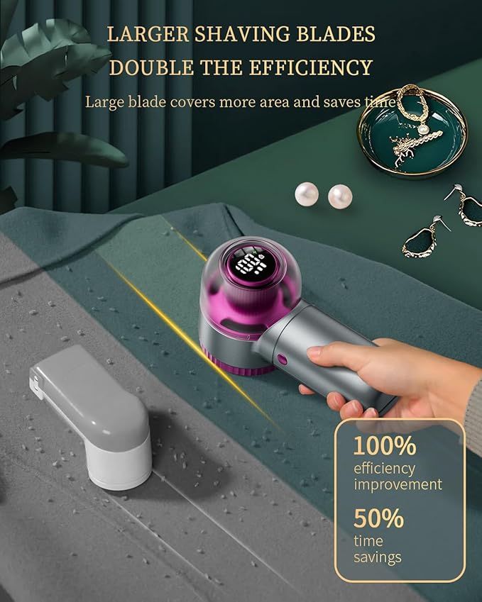 - 【Large Digital Display】A large, easy-to-read digital screen shows real-time updates on battery life, speed settings, and charging status, giving you complete control over your lint-removal process.