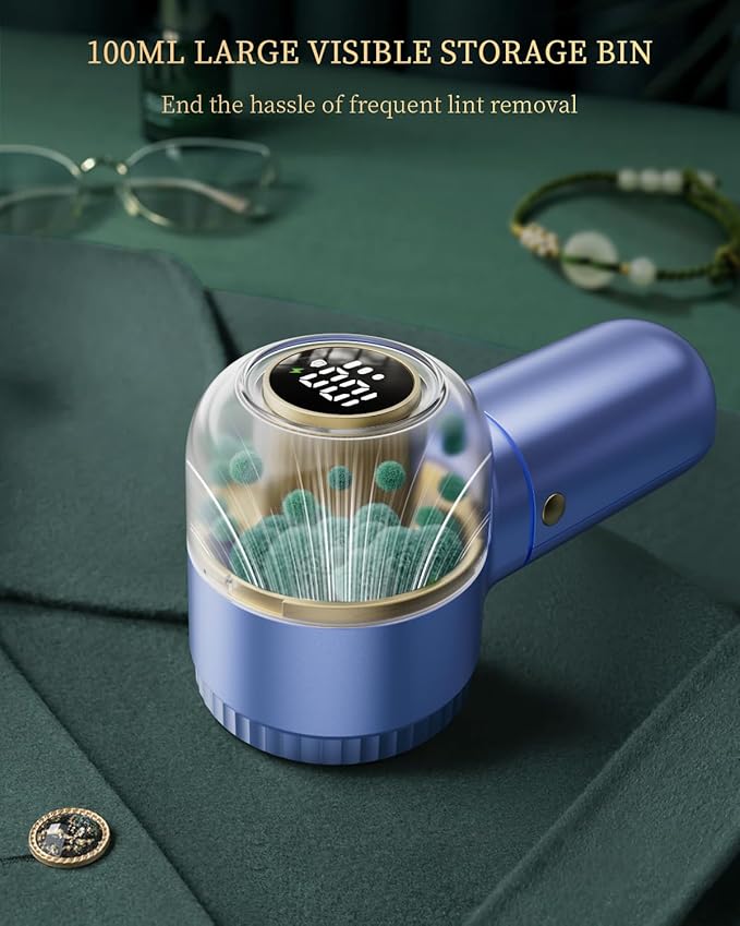 - 【Large Digital Display】A large, easy-to-read digital screen shows real-time updates on battery life, speed settings, and charging status, giving you complete control over your lint-removal process.