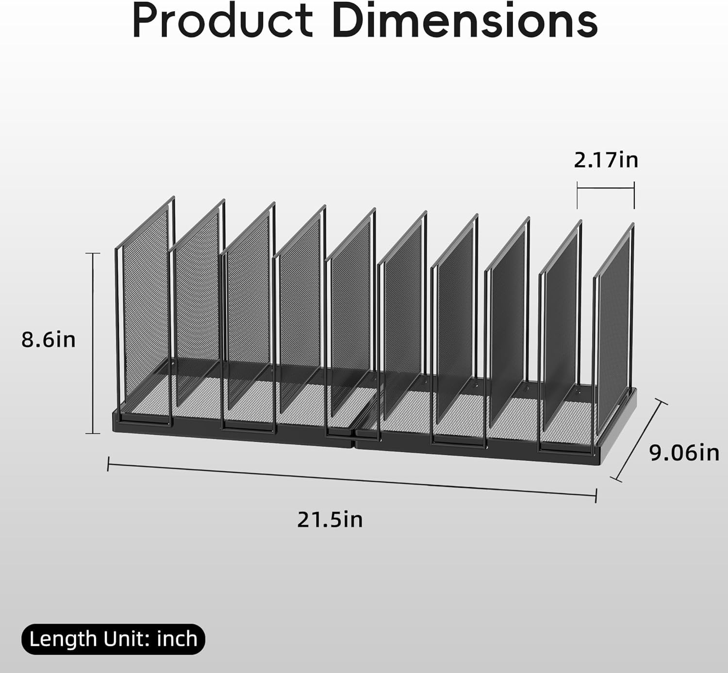 - [Modern Design] JMHUD binder organizer adopts a simple black metal grid design, making your desktop clean and modern. Assembly Dimension:21.5"W x 9.06"D x 8.6"H
