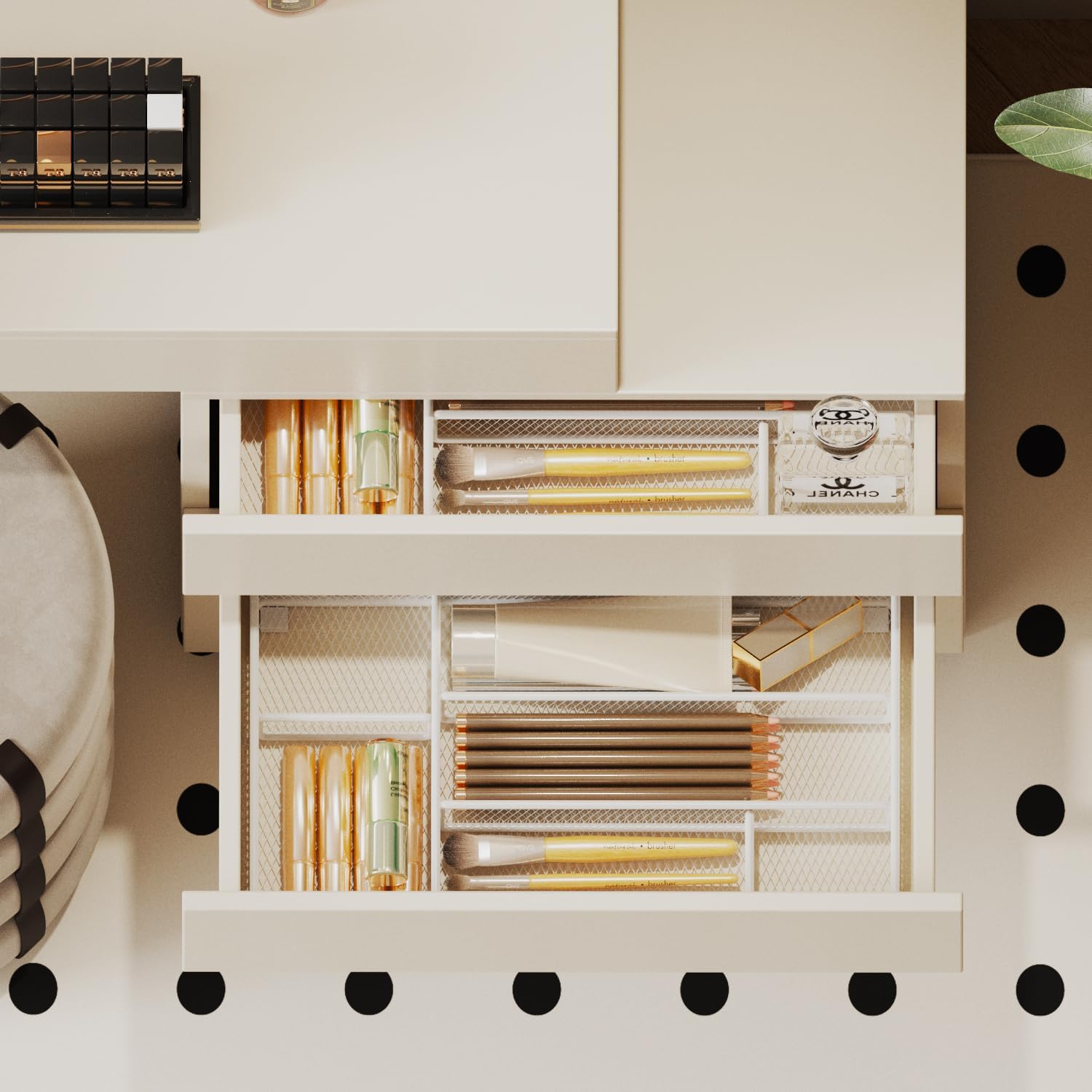 Desk Drawer Organizer Tray, Mesh Desk & Office Drawer Organizer, Suitable for Tools, Pencils & Office Supplies Storage (White)