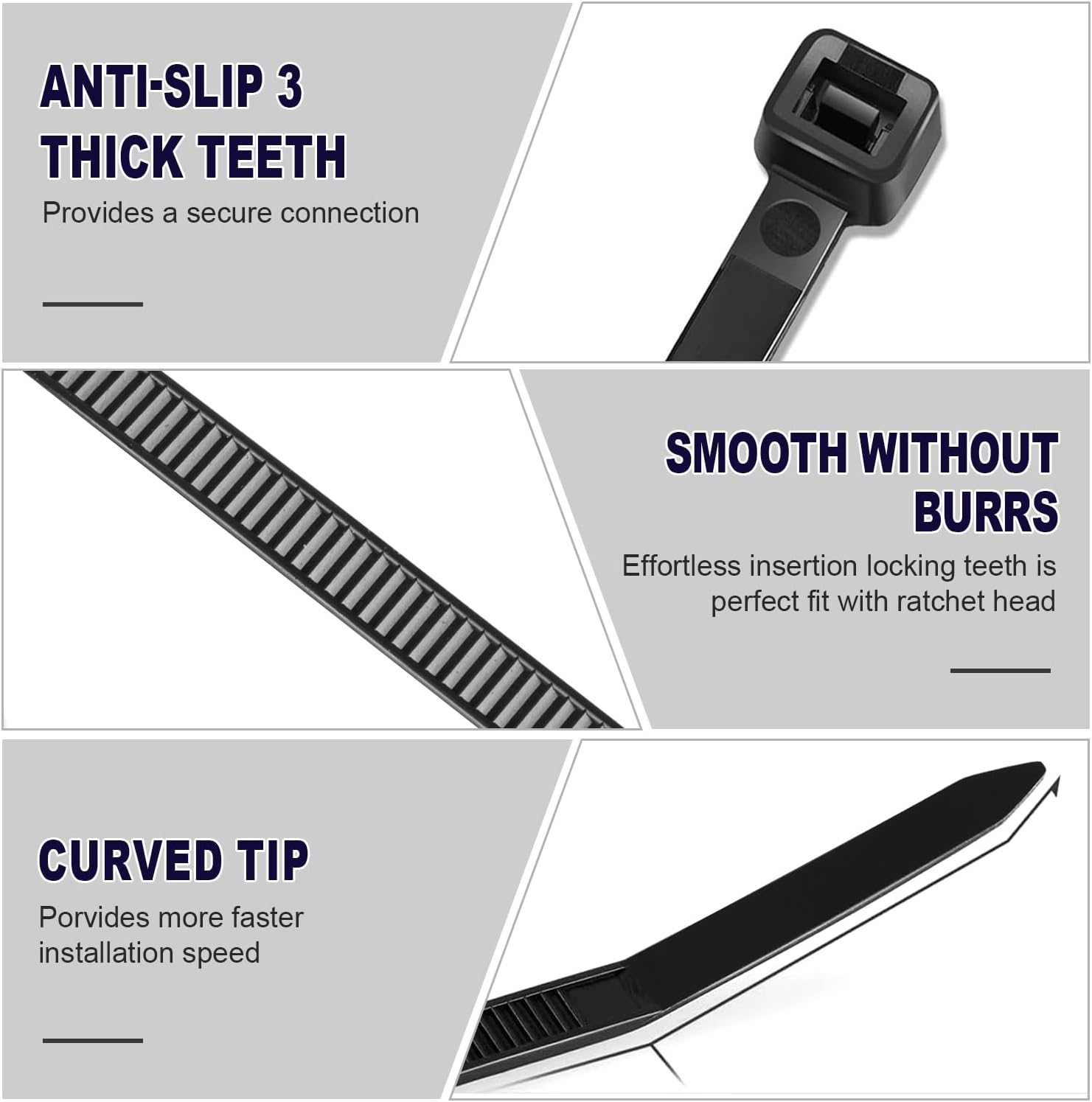 - SELF-LOCKING DESIGN: Black zip ties heavy duty with self-locking fastener design provides a secure and reliable fix. Super strong powerful lock, easy handling and prevent snagging in tight