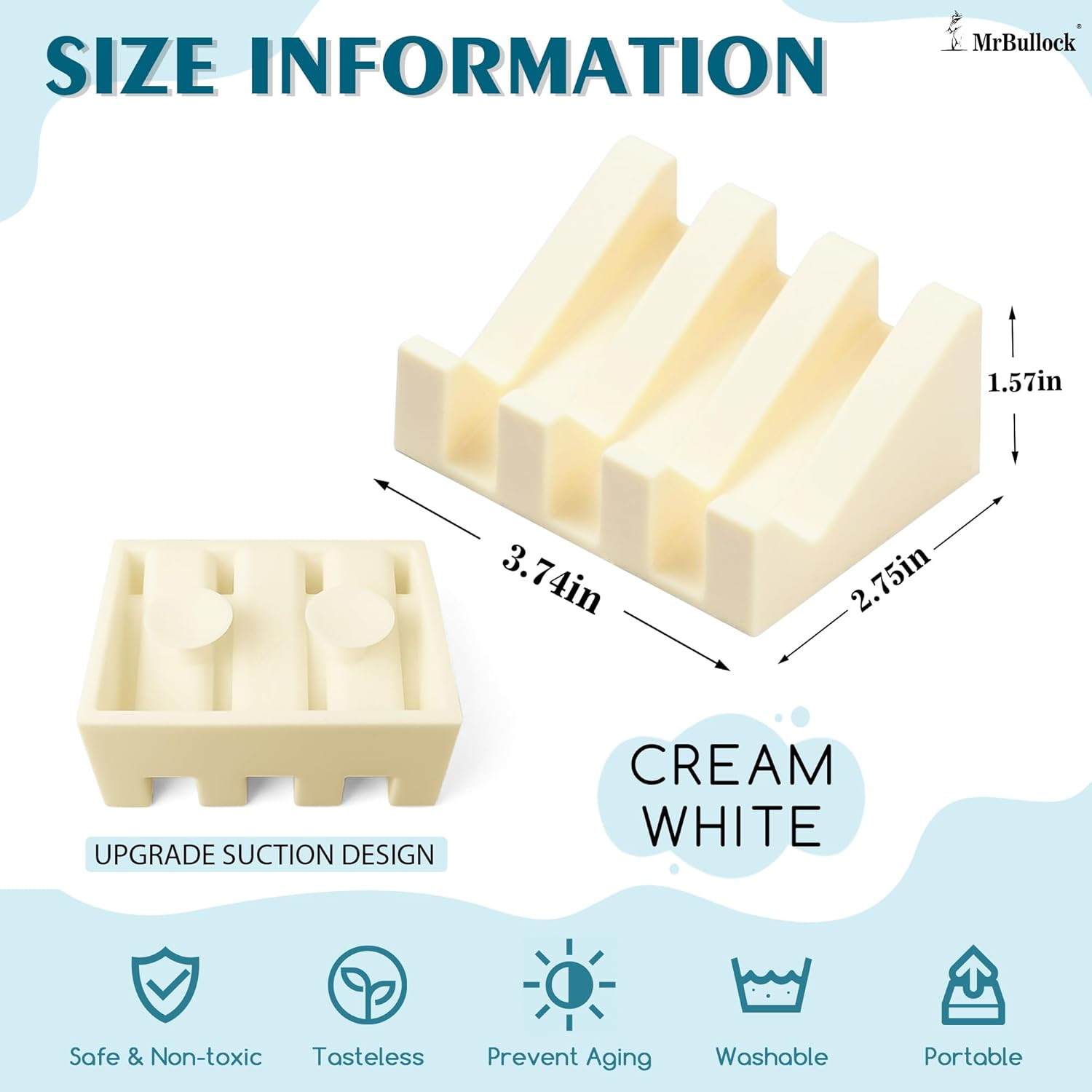 Silicone Soap Dish with Drain, Upgrade Double Suction Cups at The Bottom for Anti-Slip and Stability, Soap Dish Shower Waterfall Bar Soap Holder Tray with Drain Soap Holder (4, CreamWhite)