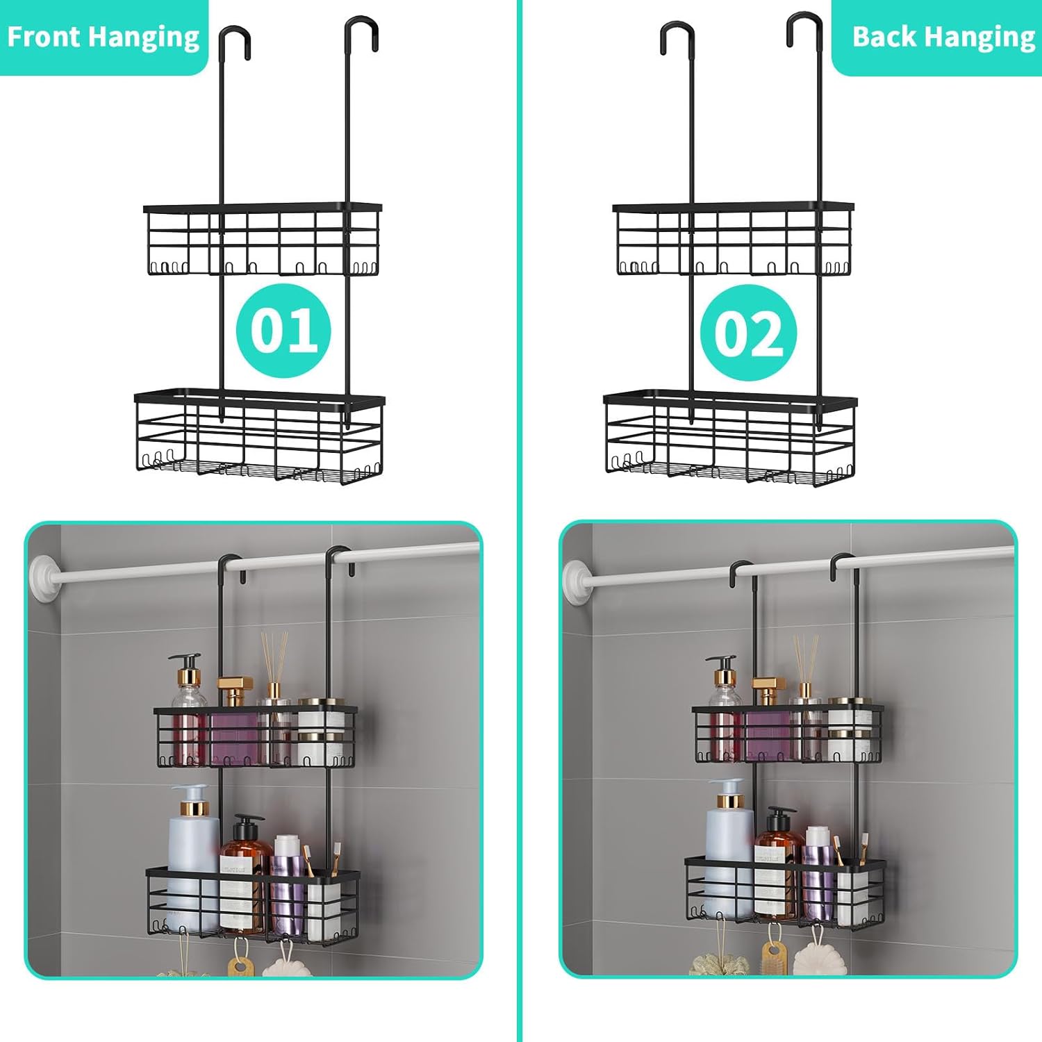 - [Dual Hanging Options] This hanging shower shelf is designed for easy setup with both front and back hanging options, offering flexibility for different bathroom layouts. Say goodbye to clutter with this convenient and versatile shower organizer hanging solution