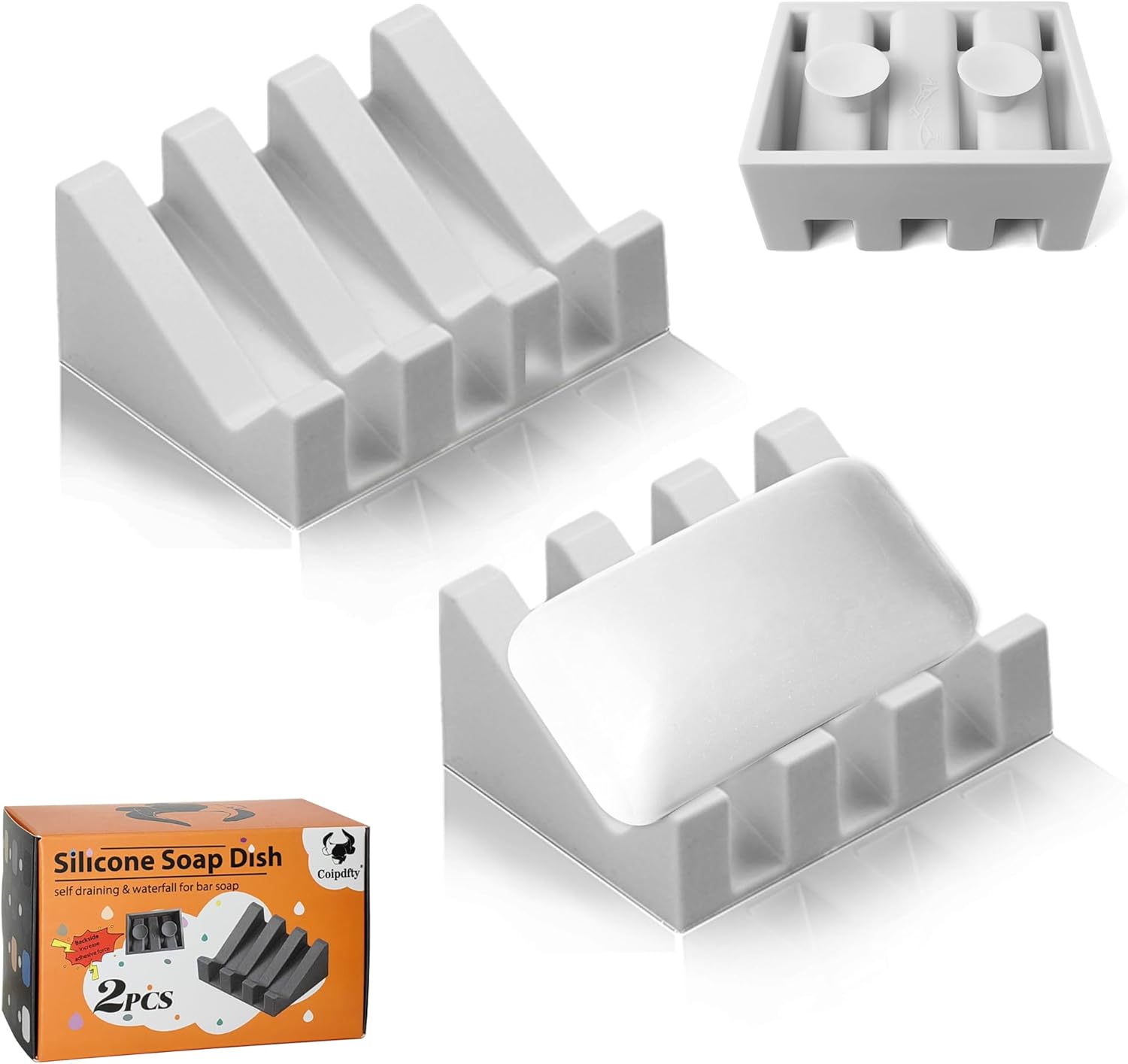 Self Draining Soap Dish,Silicone Suction Cup Soap Holder, Bathroom Soap Dish for Bar Soap,Can Extend Soap Life,Bathroom, Bath Tub, Kitchen Sink (2, Light Grey)