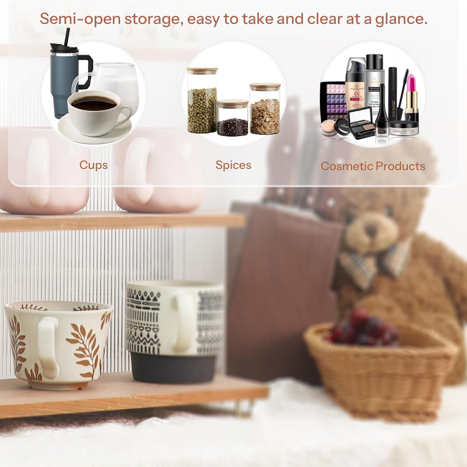 - Stylish Design: Featuring wavy acrylic side panels and a natural wood board. The sturdy construction ensures that it can hold the weight of multiple mugs without wobbling or tipping. this organizer presents an aesthetically pleasing texture, ideal for coffee bar enthusiasts and those who love to decorate their spaces.